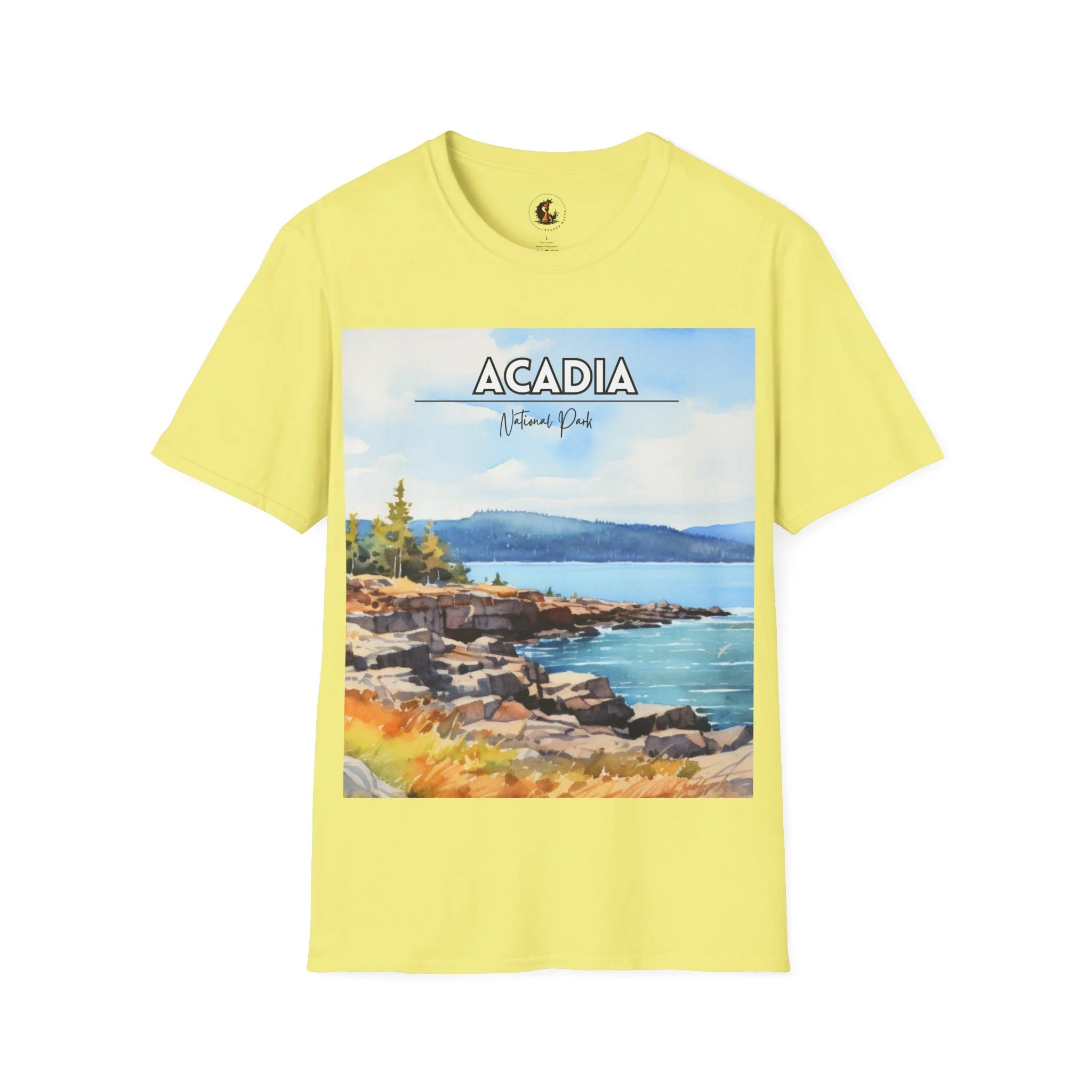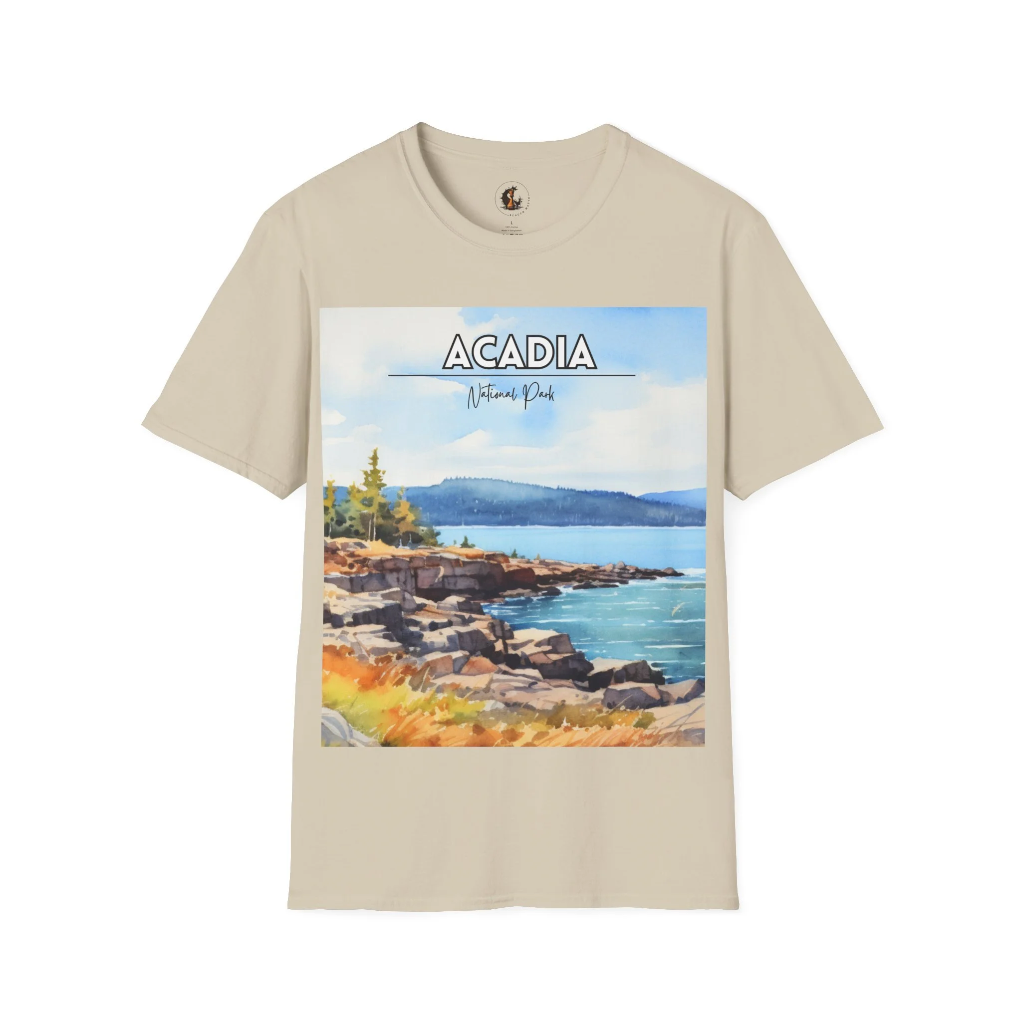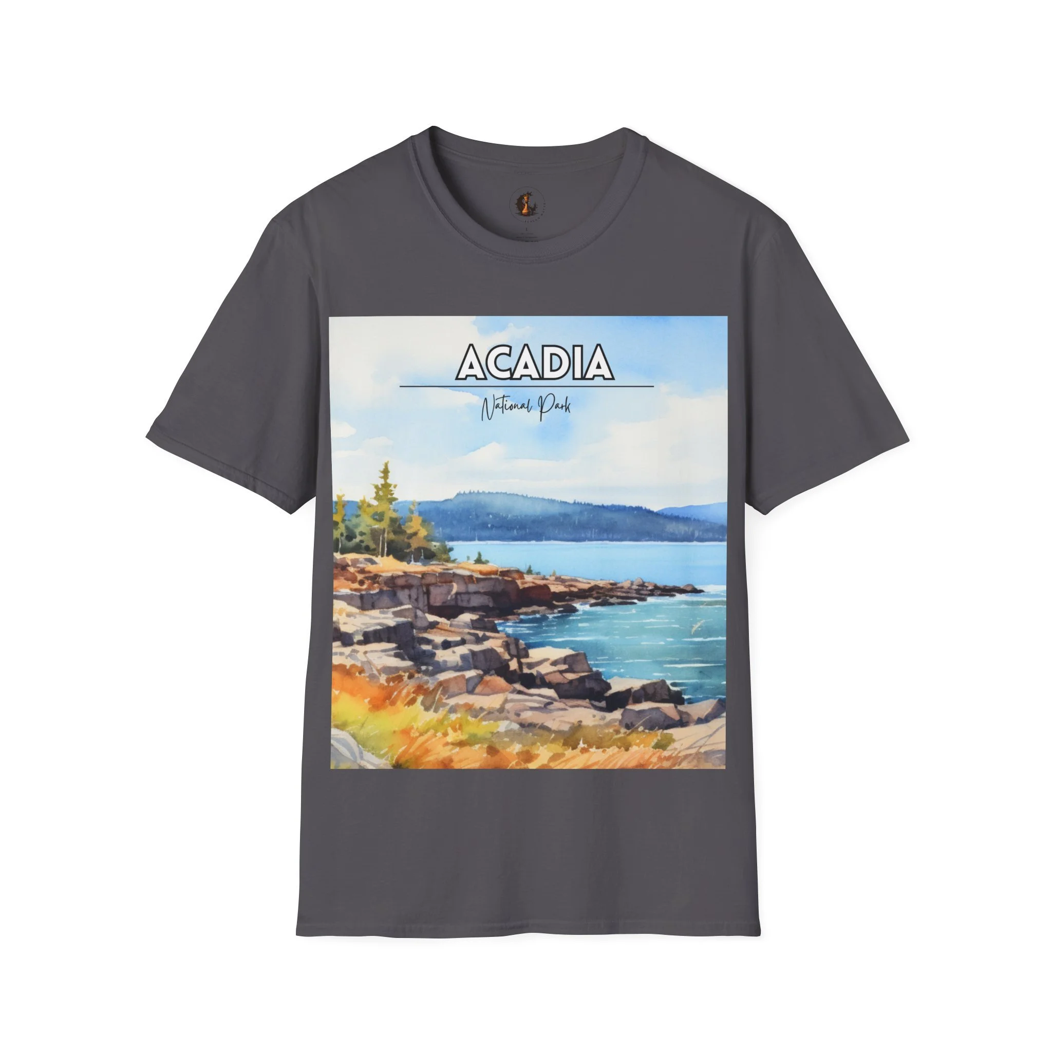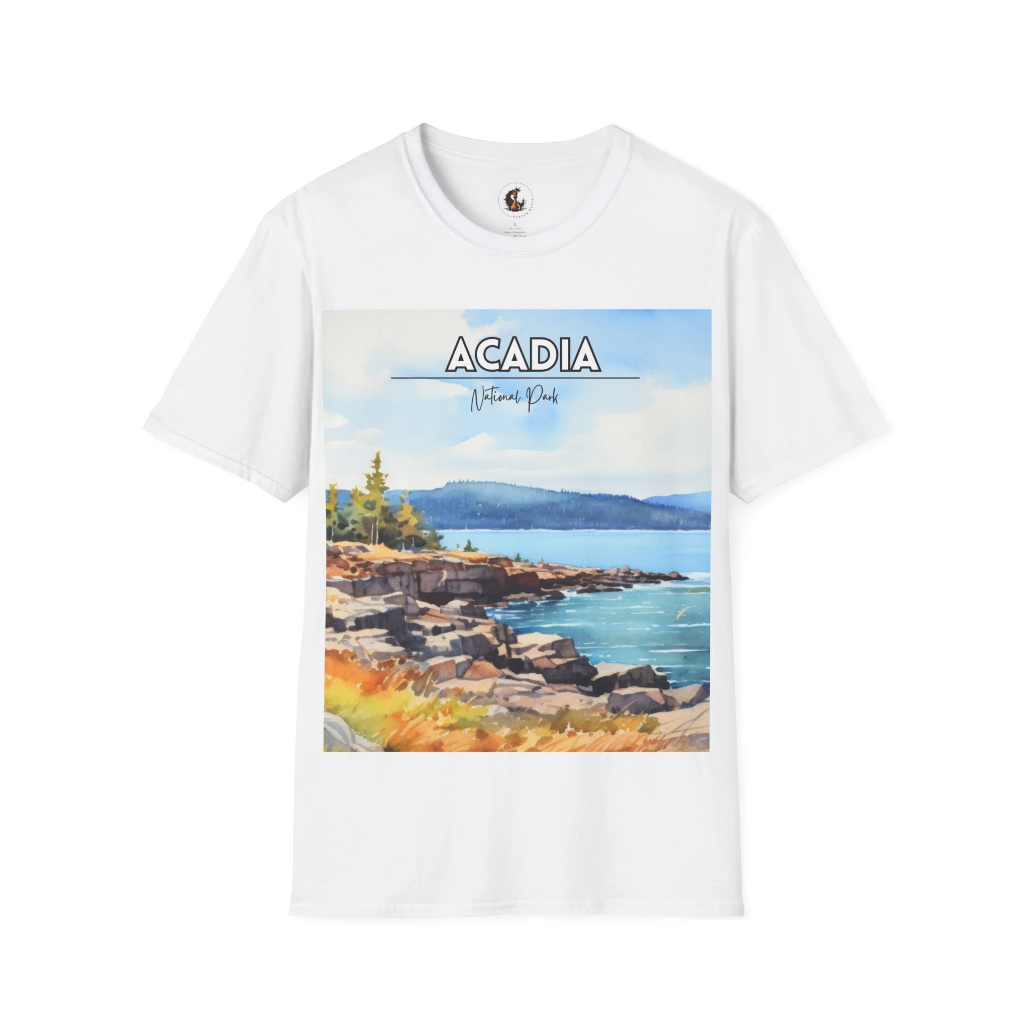 Acadia National Park Watercolor T-Shirt – Maine Coastal Art Tee, Ocean Cliff Landscape Graphic, Nature Travel Shirt
