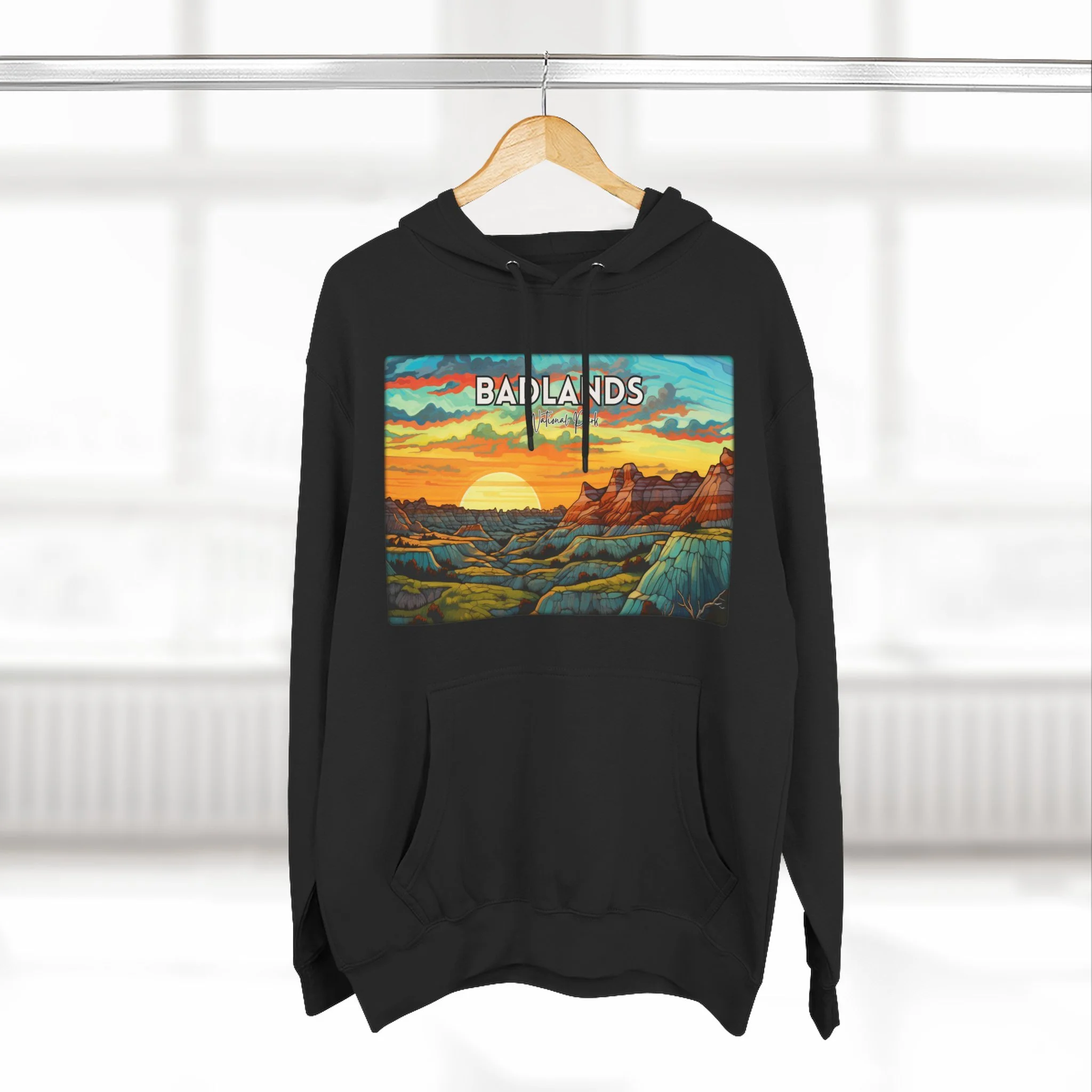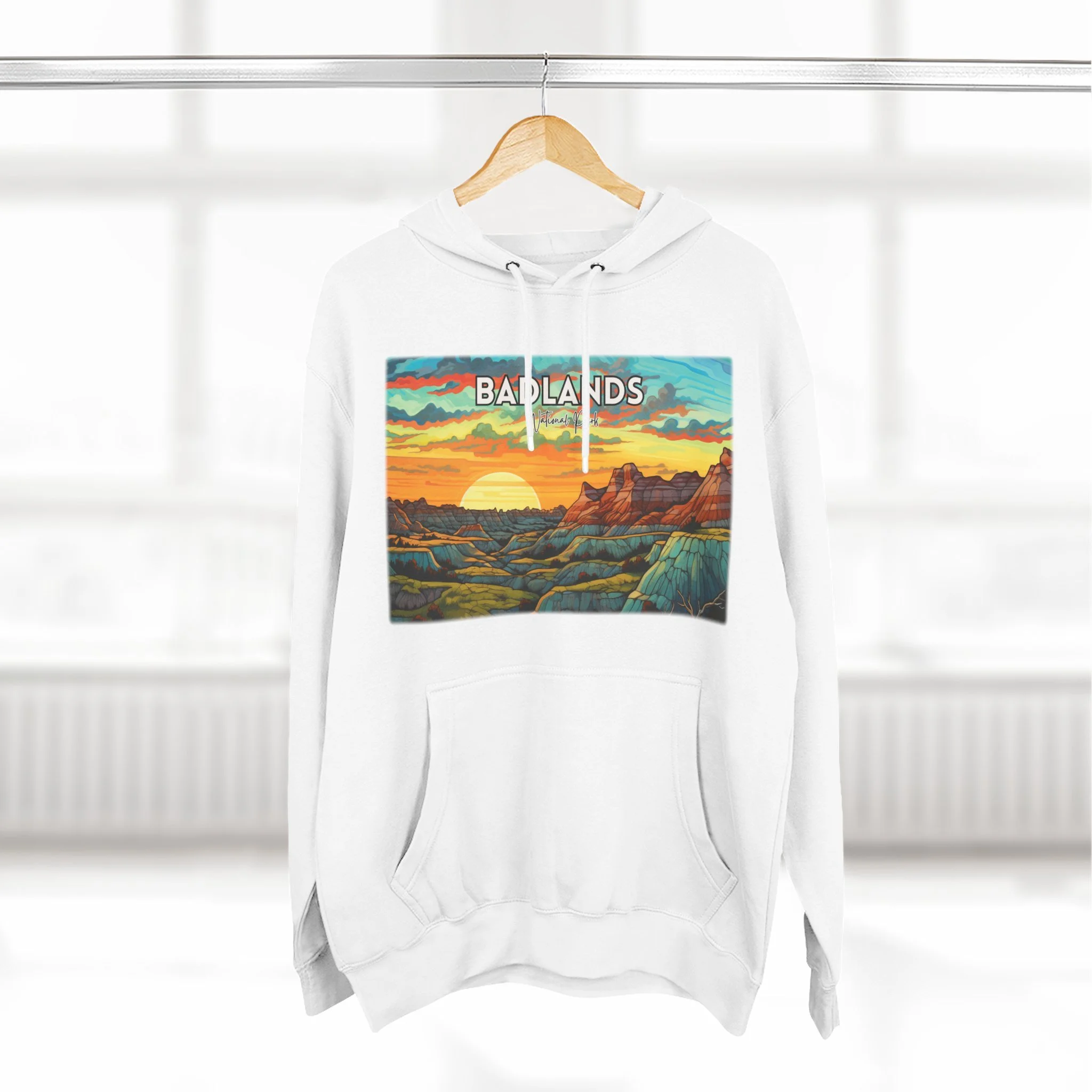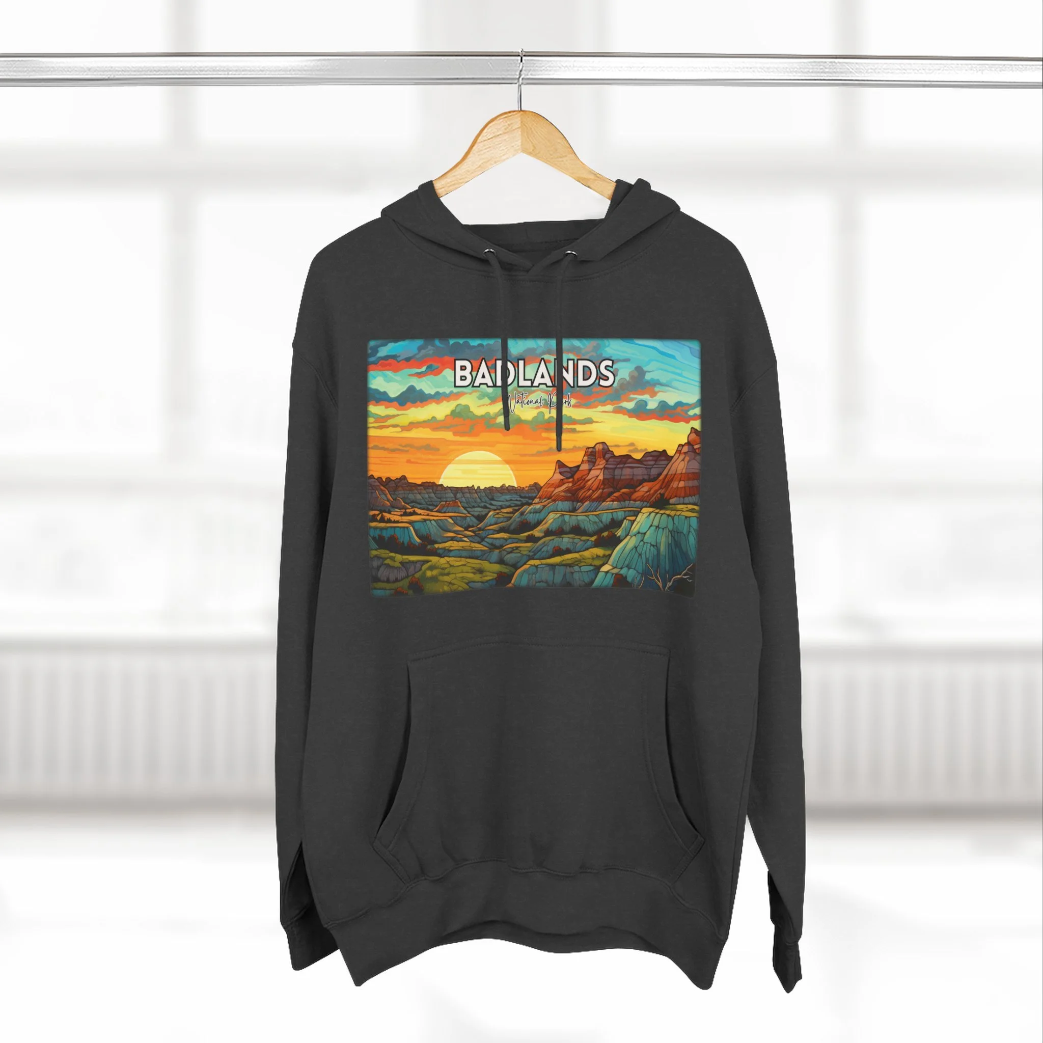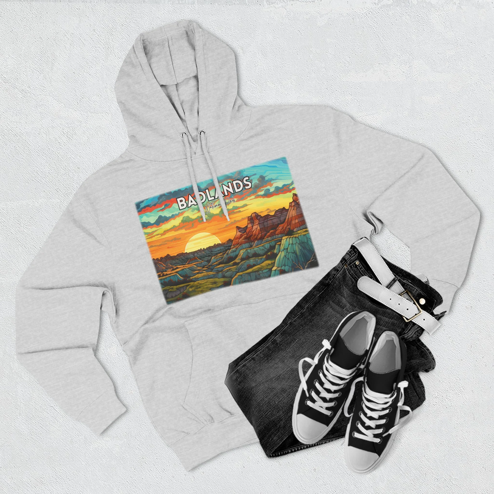 Badlands National Park Hoodie – Scacco Matto Abstract Sunset Acrylic Art – Unisex Fleece – Desert Landscape Sweatshirt