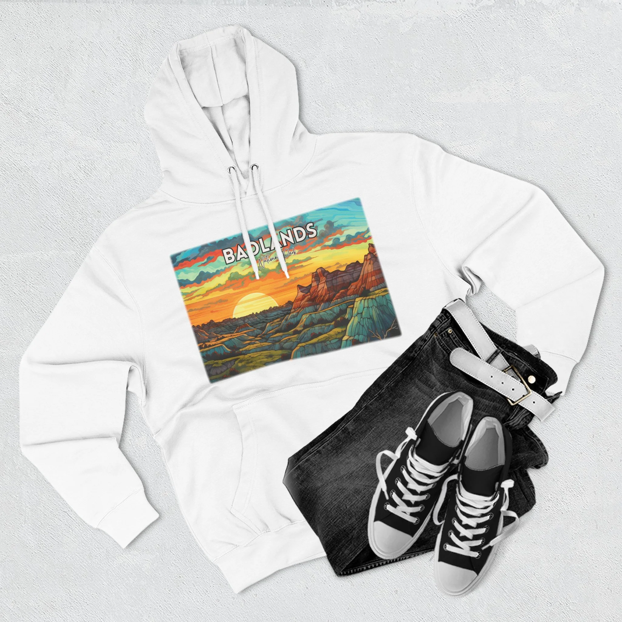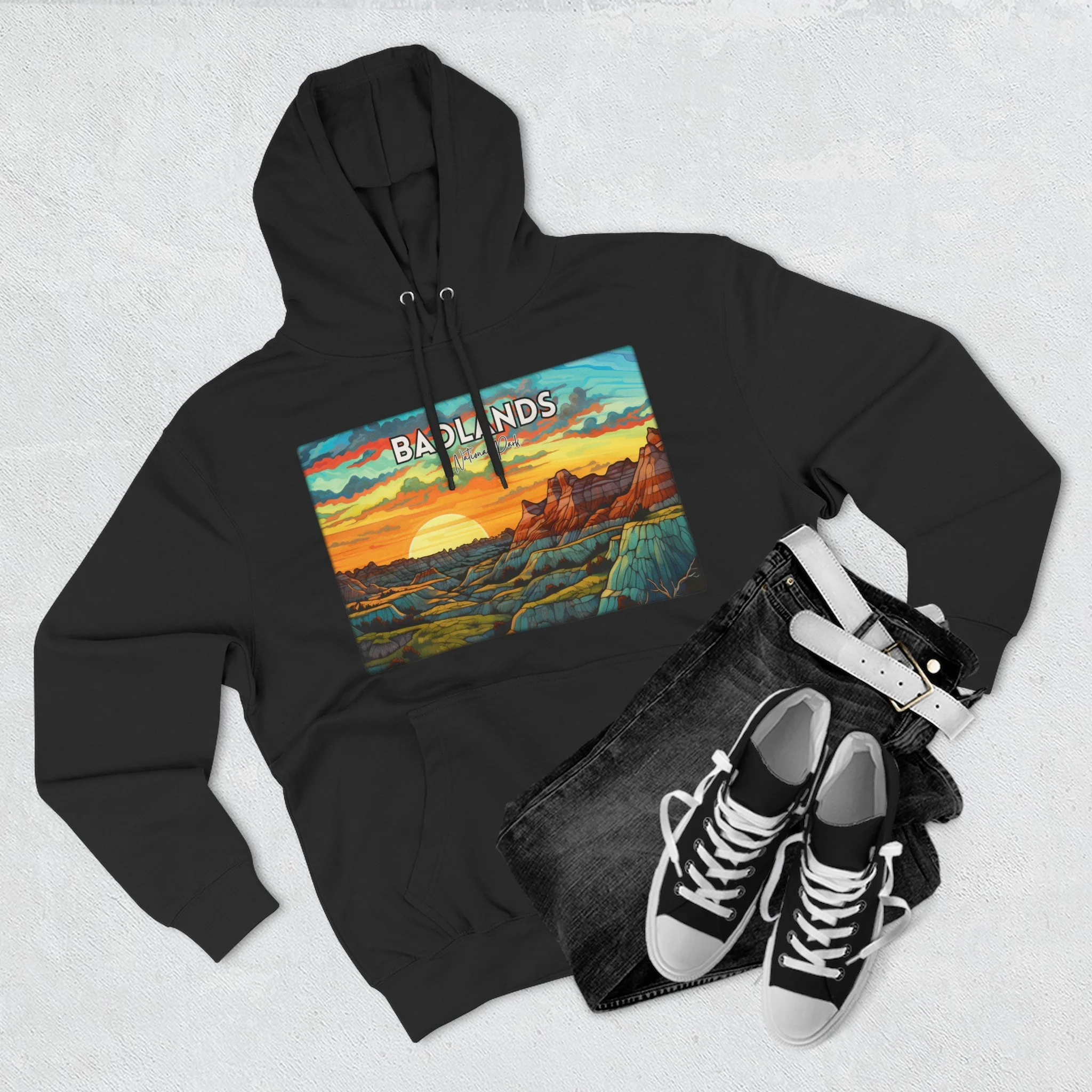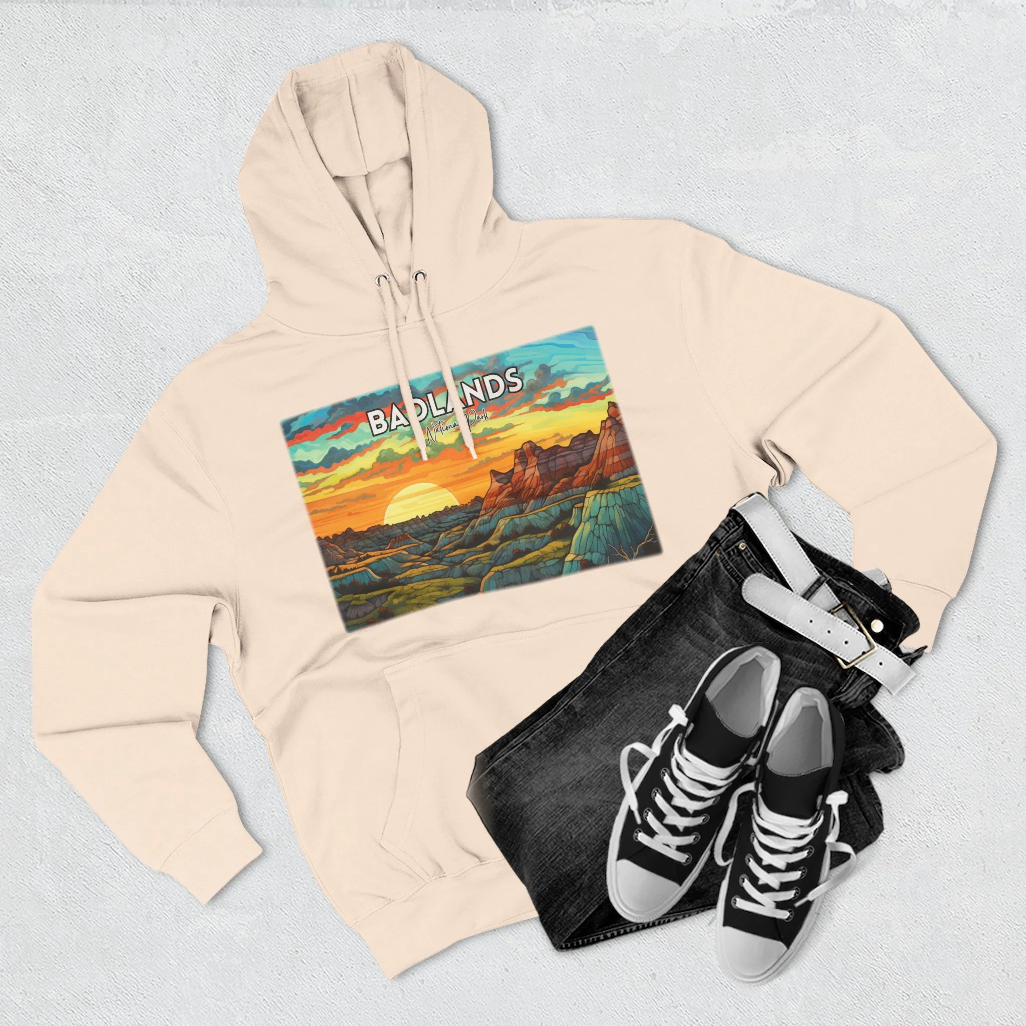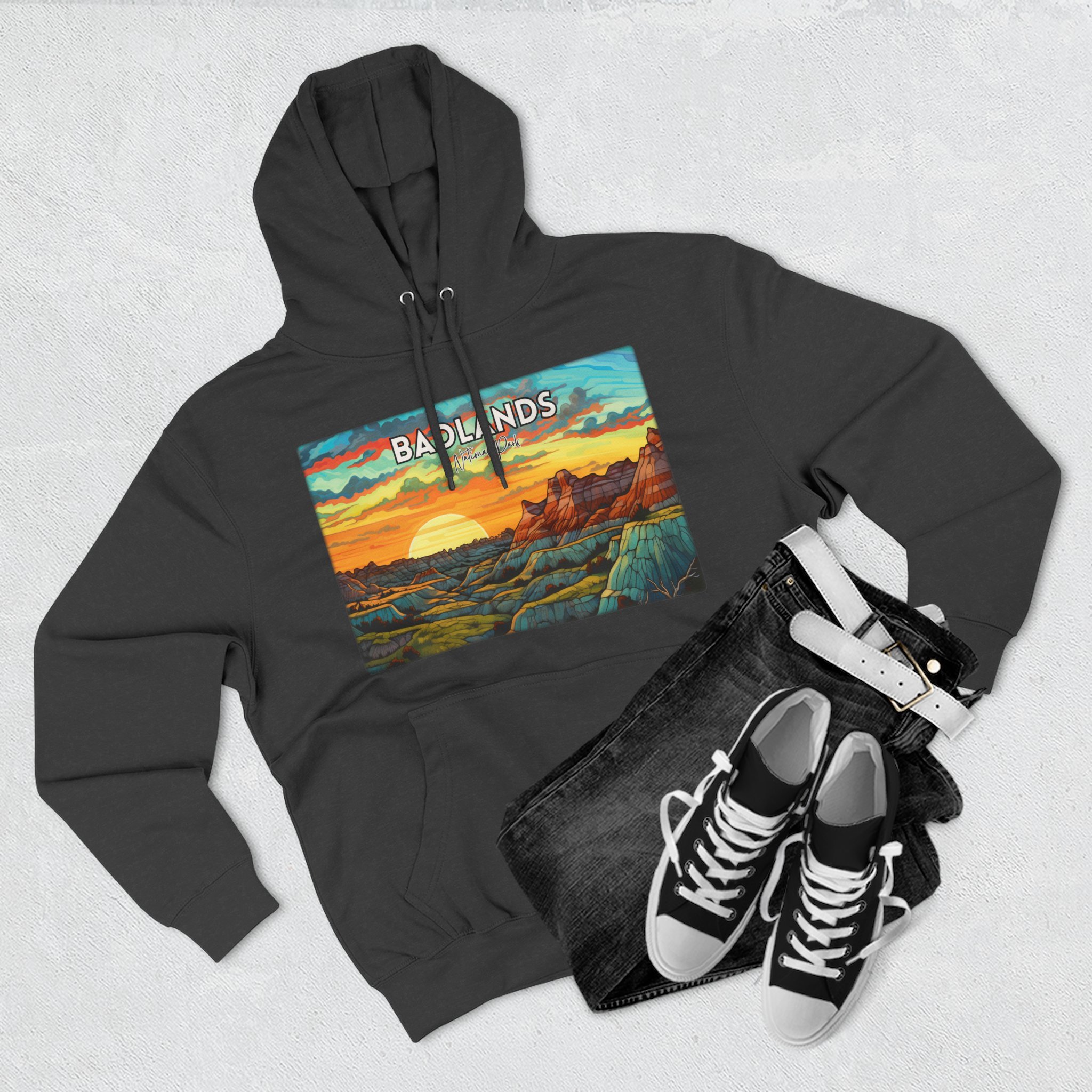 Badlands National Park Hoodie – Scacco Matto Abstract Sunset Acrylic Art – Unisex Fleece – Desert Landscape Sweatshirt