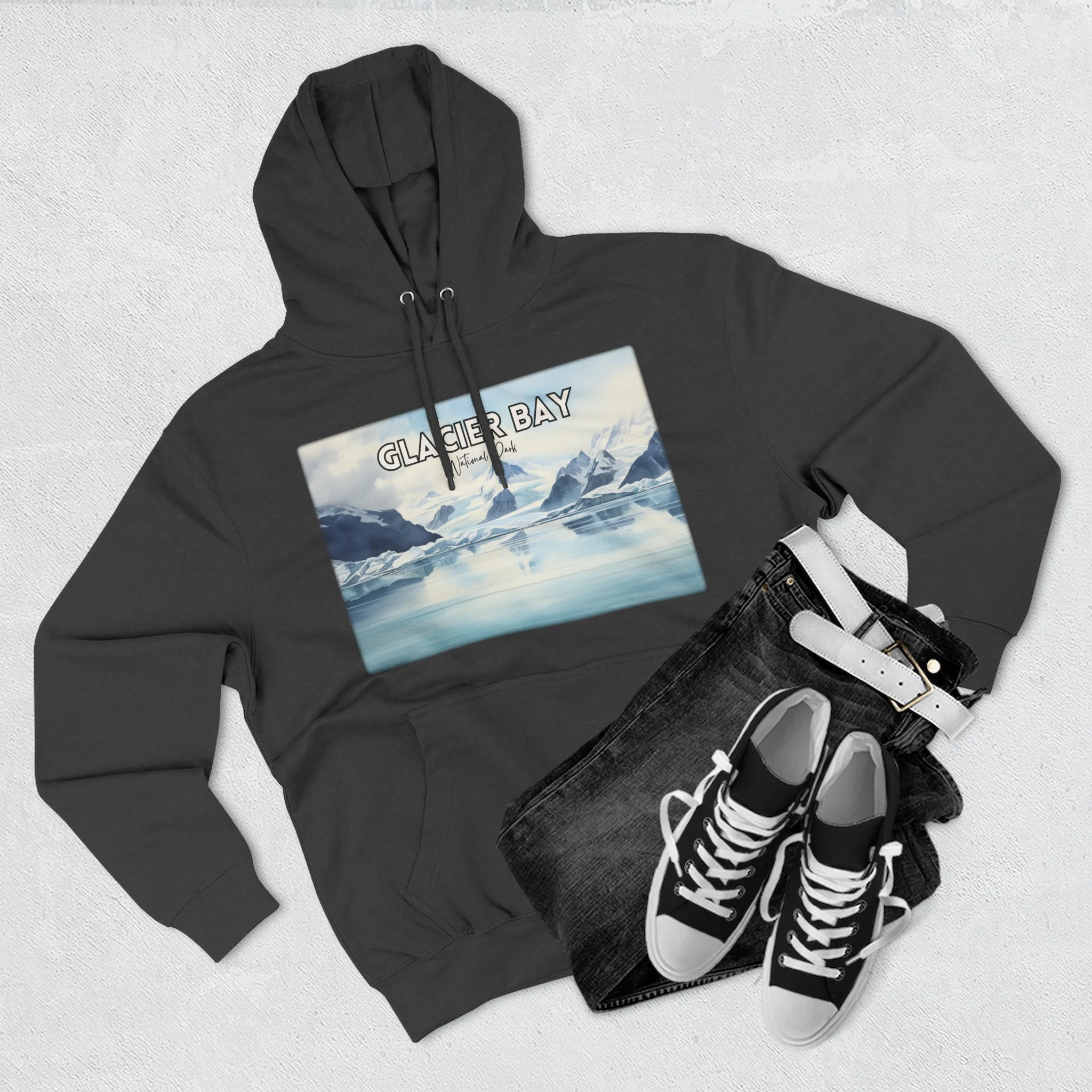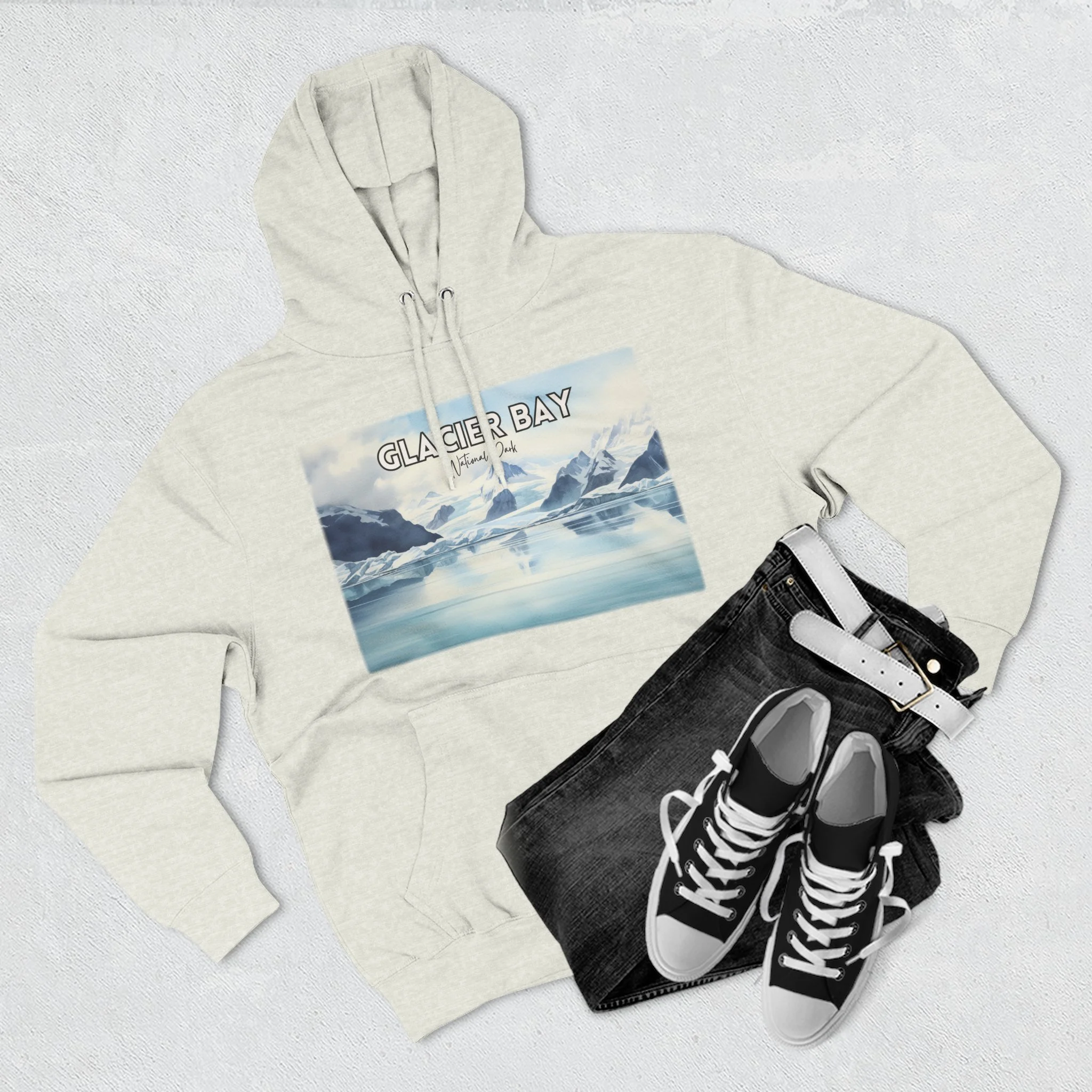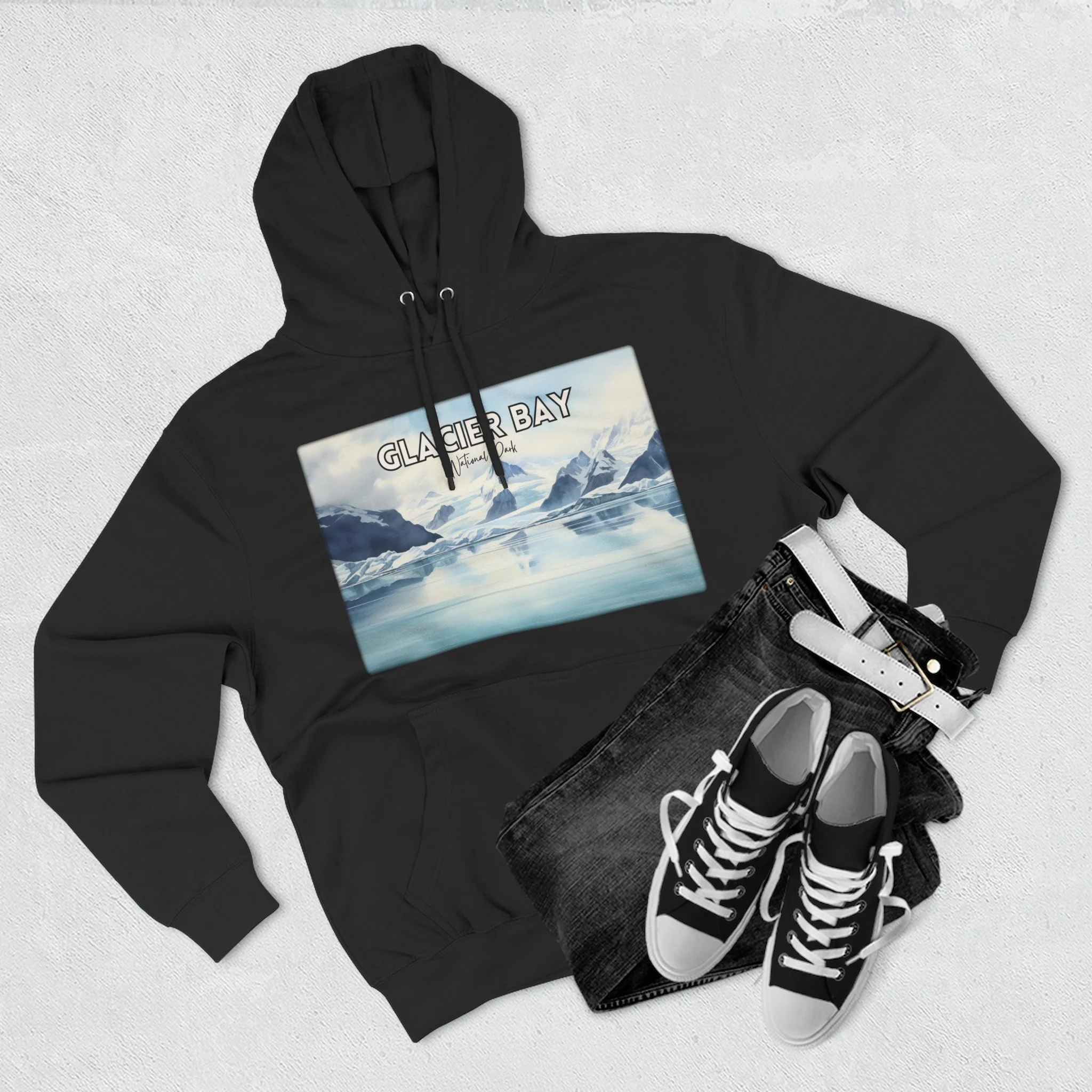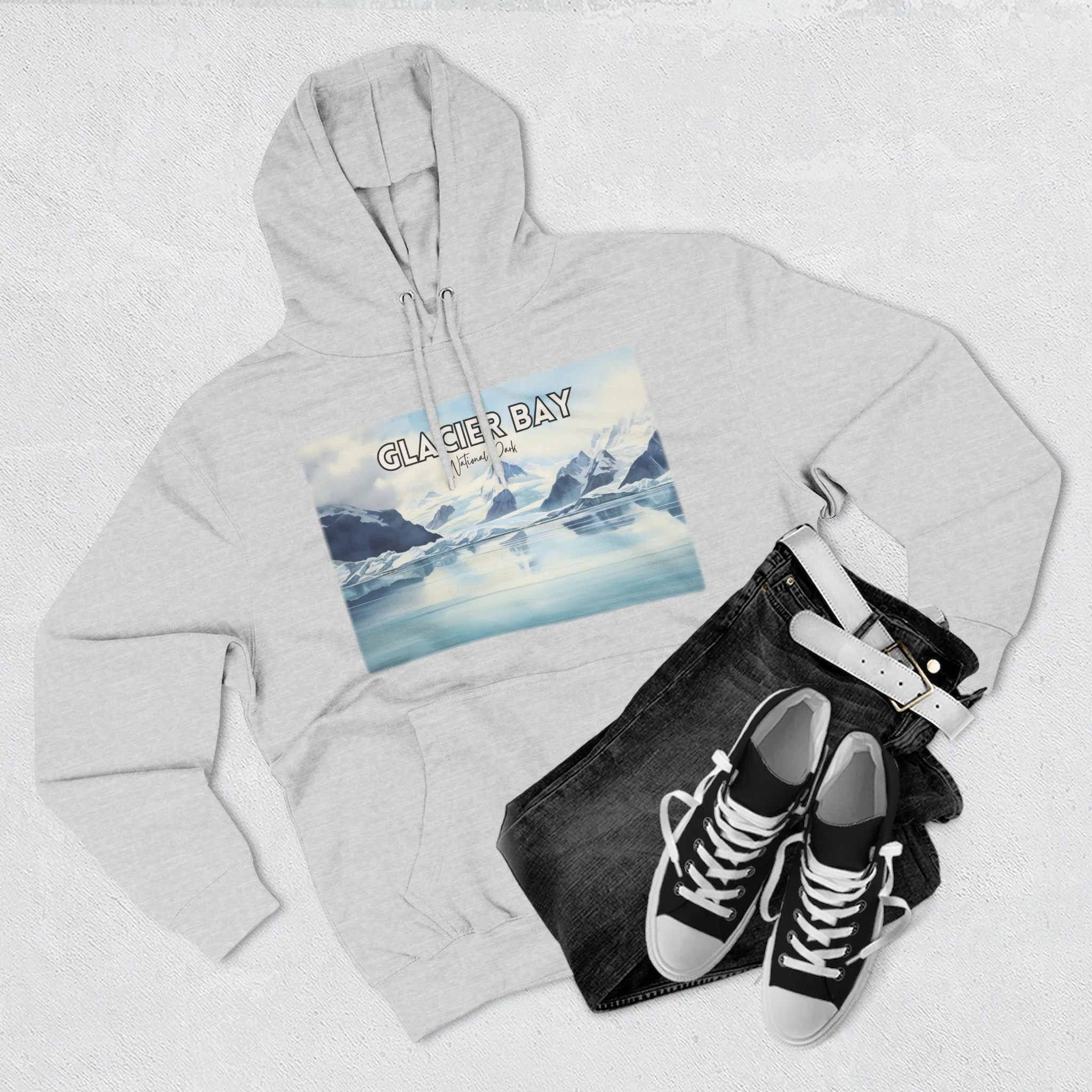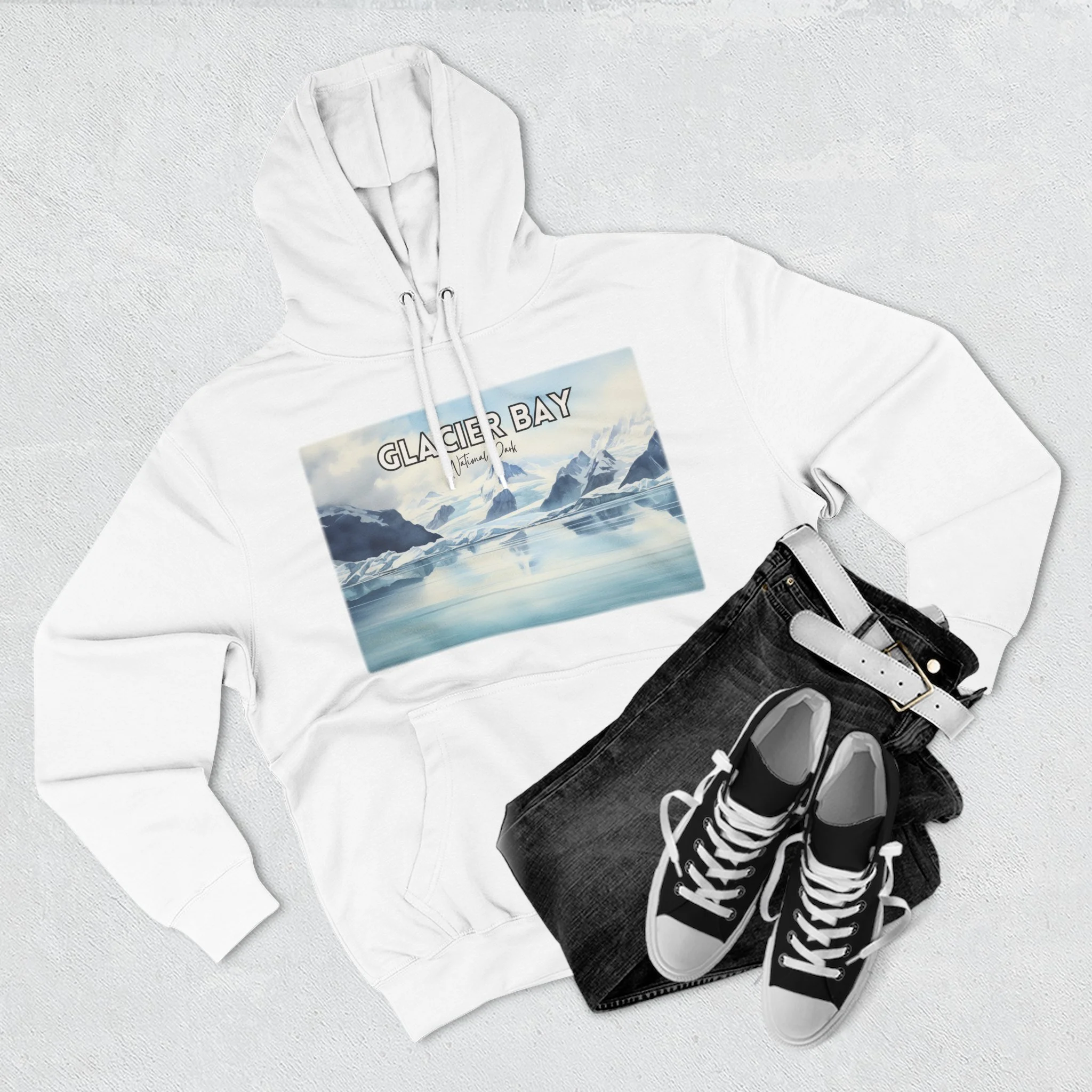Bring the majestic beauty of Alaska’s Glacier Bay to your wardrobe with this hoodie featuring a serene watercolor coastal landscape. Inspired by the icy fjords, glacier-carved peaks, and deep blue waters of this iconic national park, the artwork blends soft tones with natural elegance. This unisex pullover sweatshirt is crafted for comfort and warmth—ideal for nature lovers, park enthusiasts, or anyone drawn to the raw, remote beauty of the Alaskan wilderness. A perfect gift for travelers, artists, and outdoor adventurers alike.