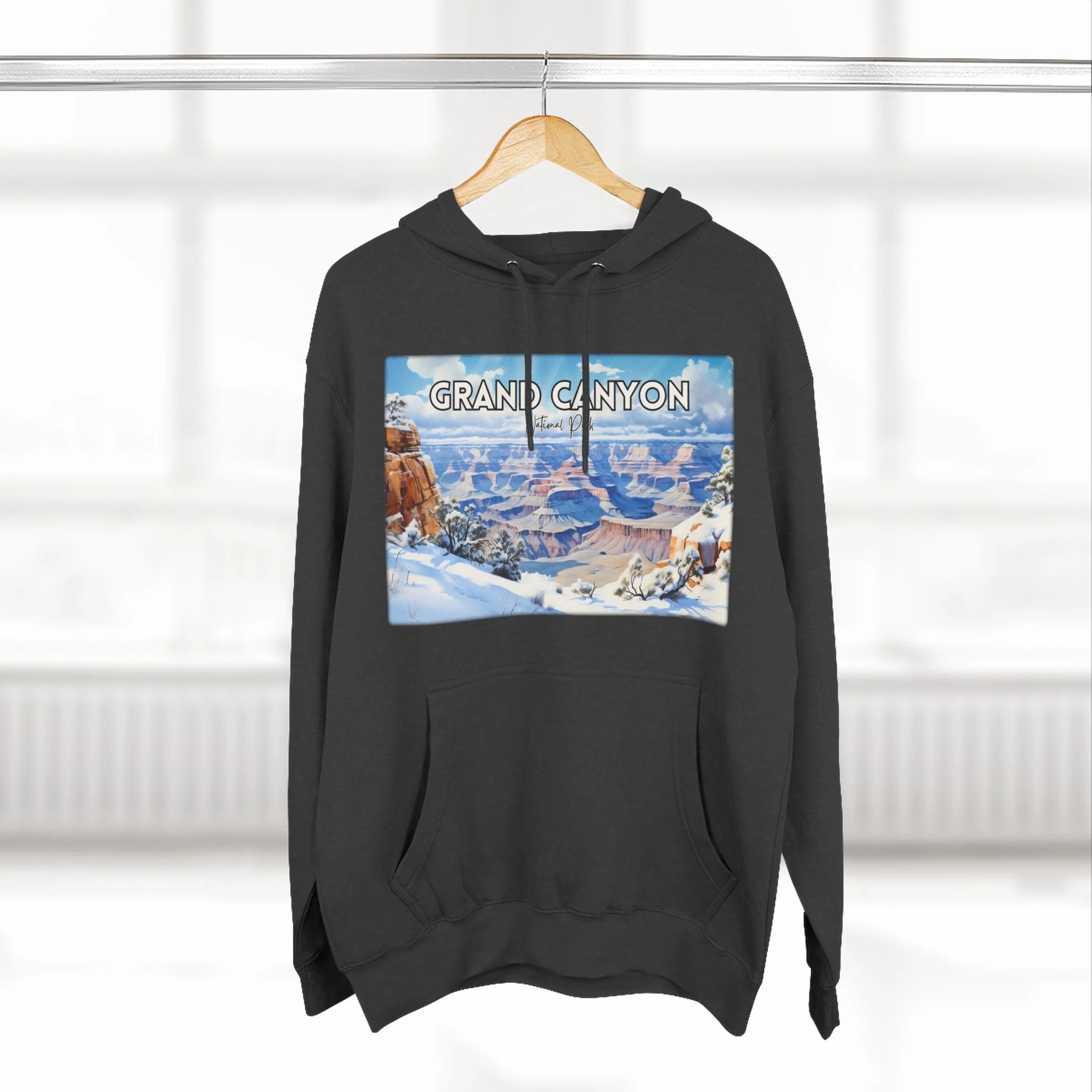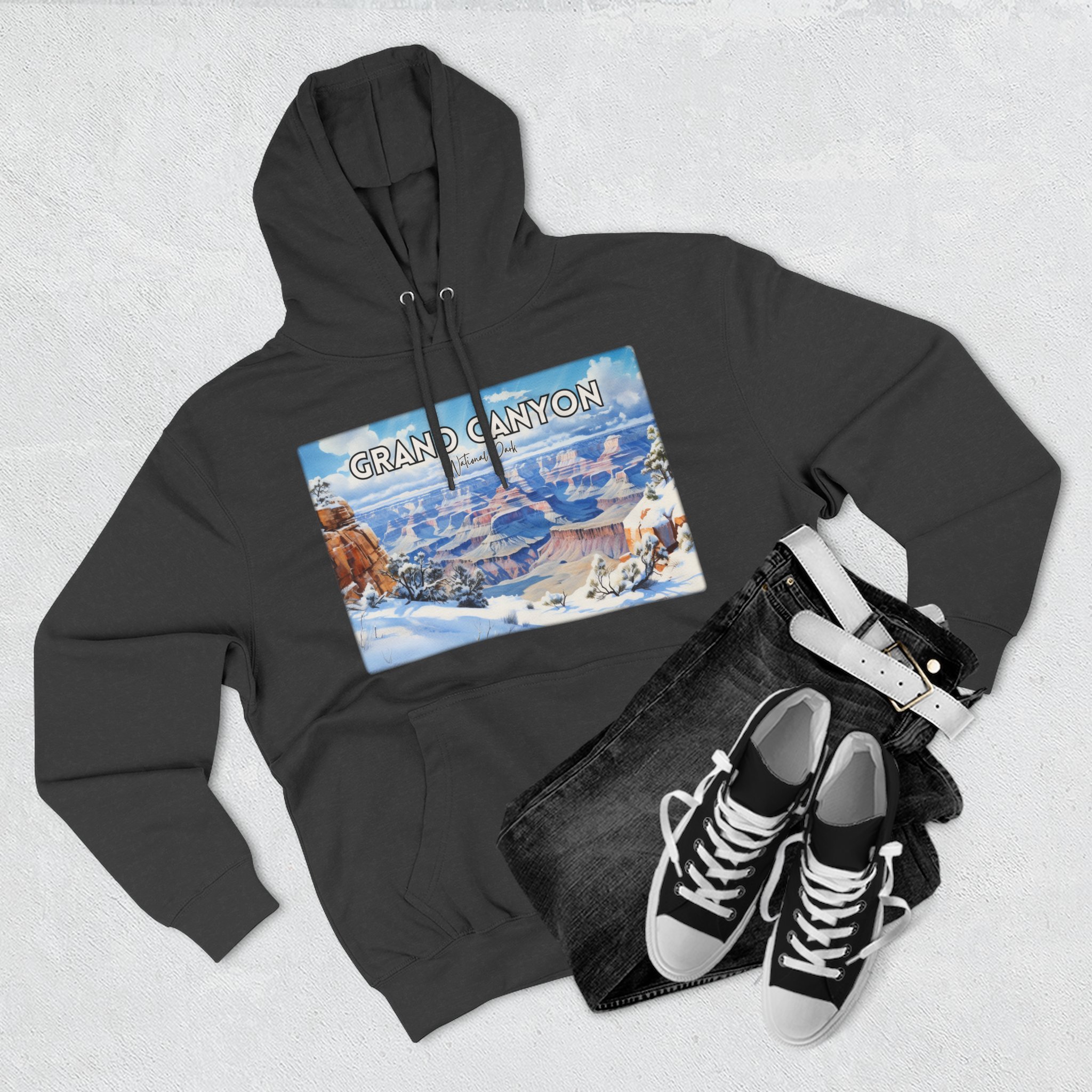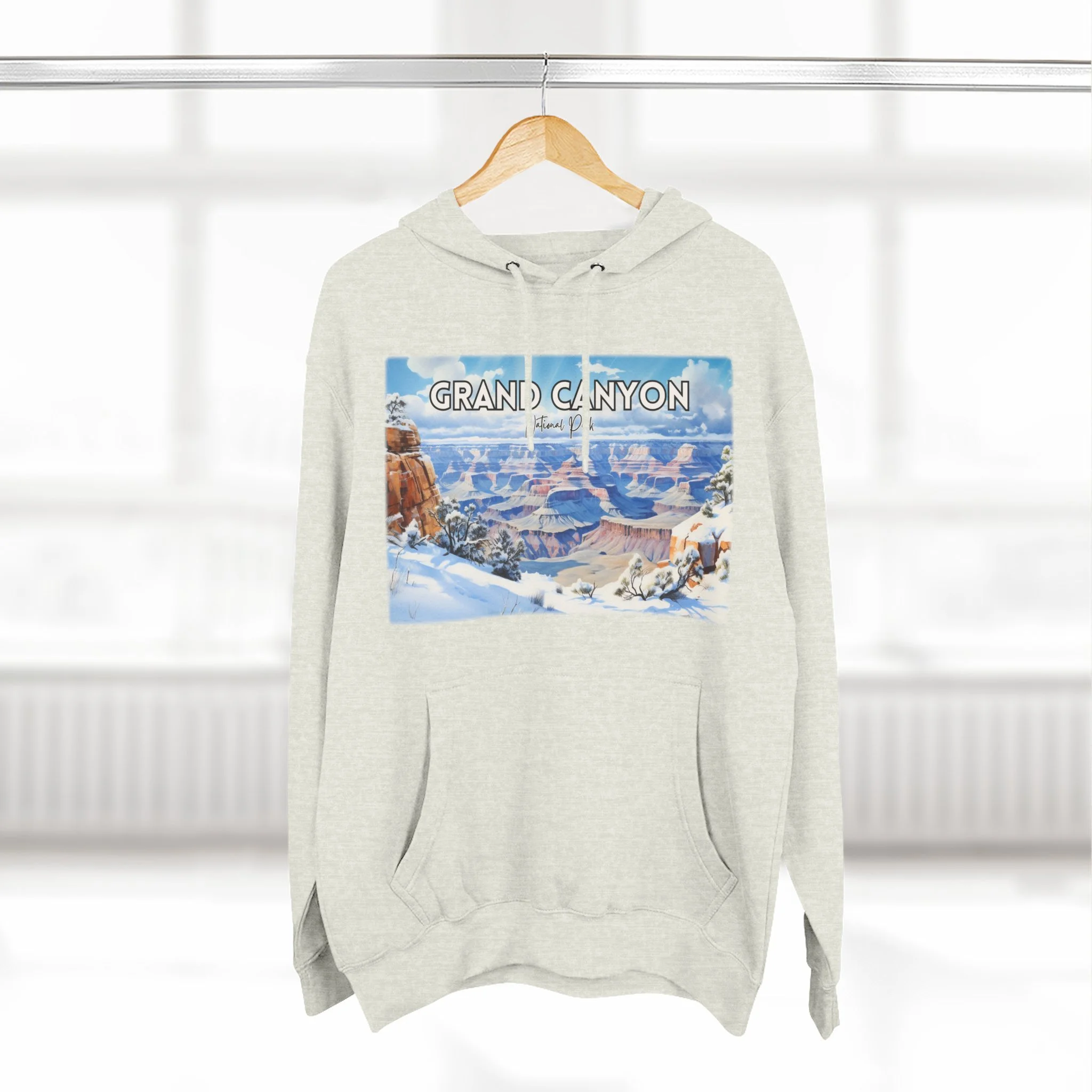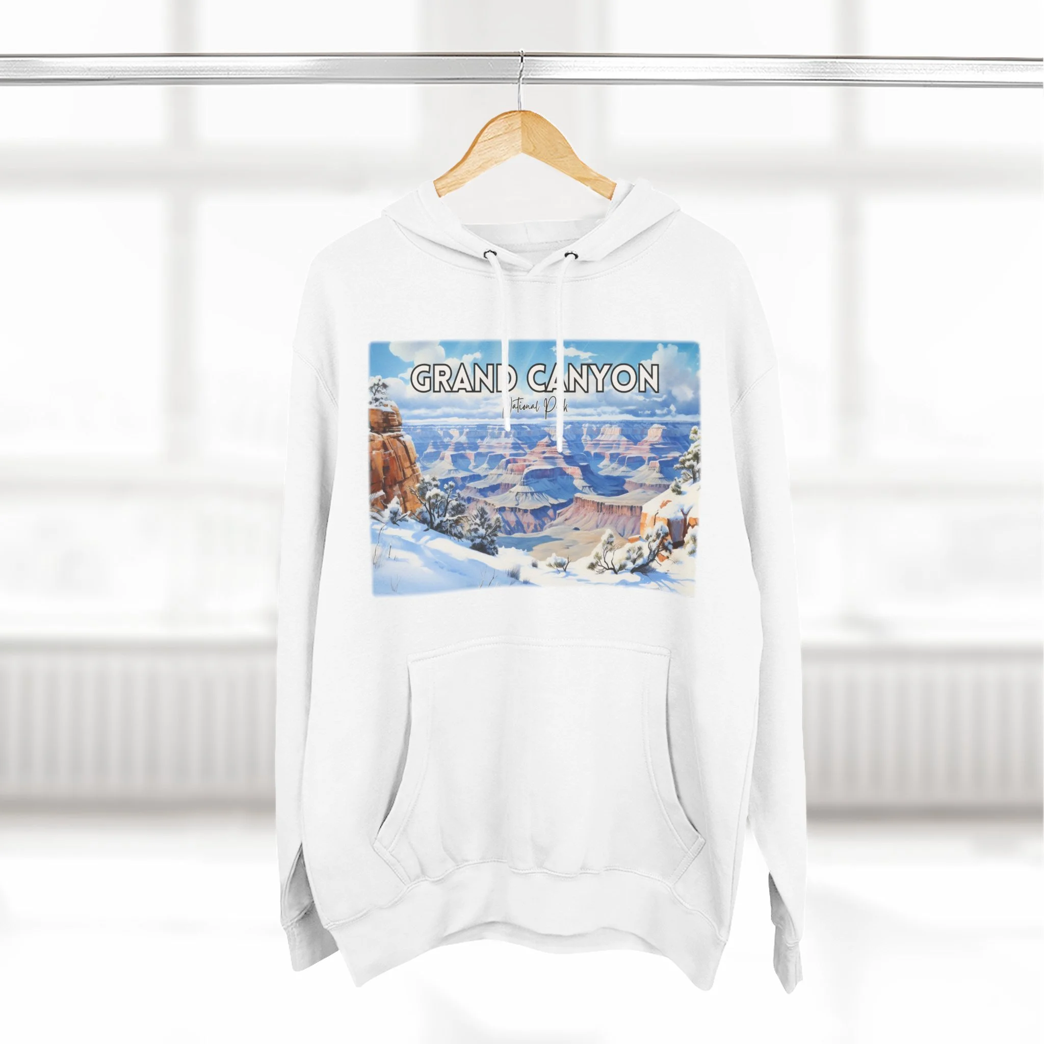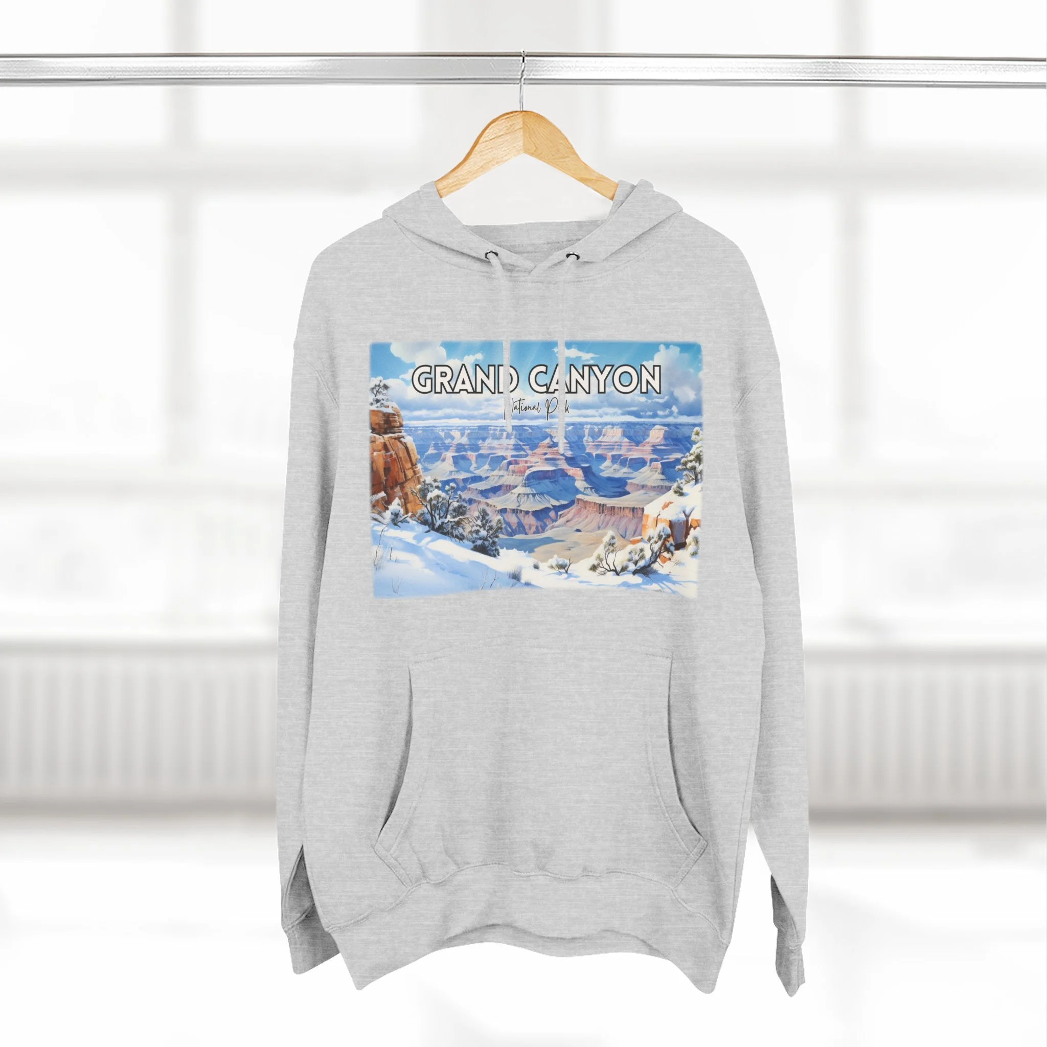 Embrace the quiet beauty of the Grand Canyon in winter with this hoodie featuring a delicate watercolor design of snow-dusted cliffs and serene skies. Capturing the stillness and contrast of the season, the artwork offers a fresh take on the iconic Arizona landscape. Made for comfort and warmth, this unisex pullover is ideal for national park enthusiasts, winter travelers, and lovers of soft, nature-inspired art. Whether you're reminiscing about a chilly canyon hike or dreaming of desert snowfall, this hoodie is a cozy, artistic reminder of the season’s quiet power.