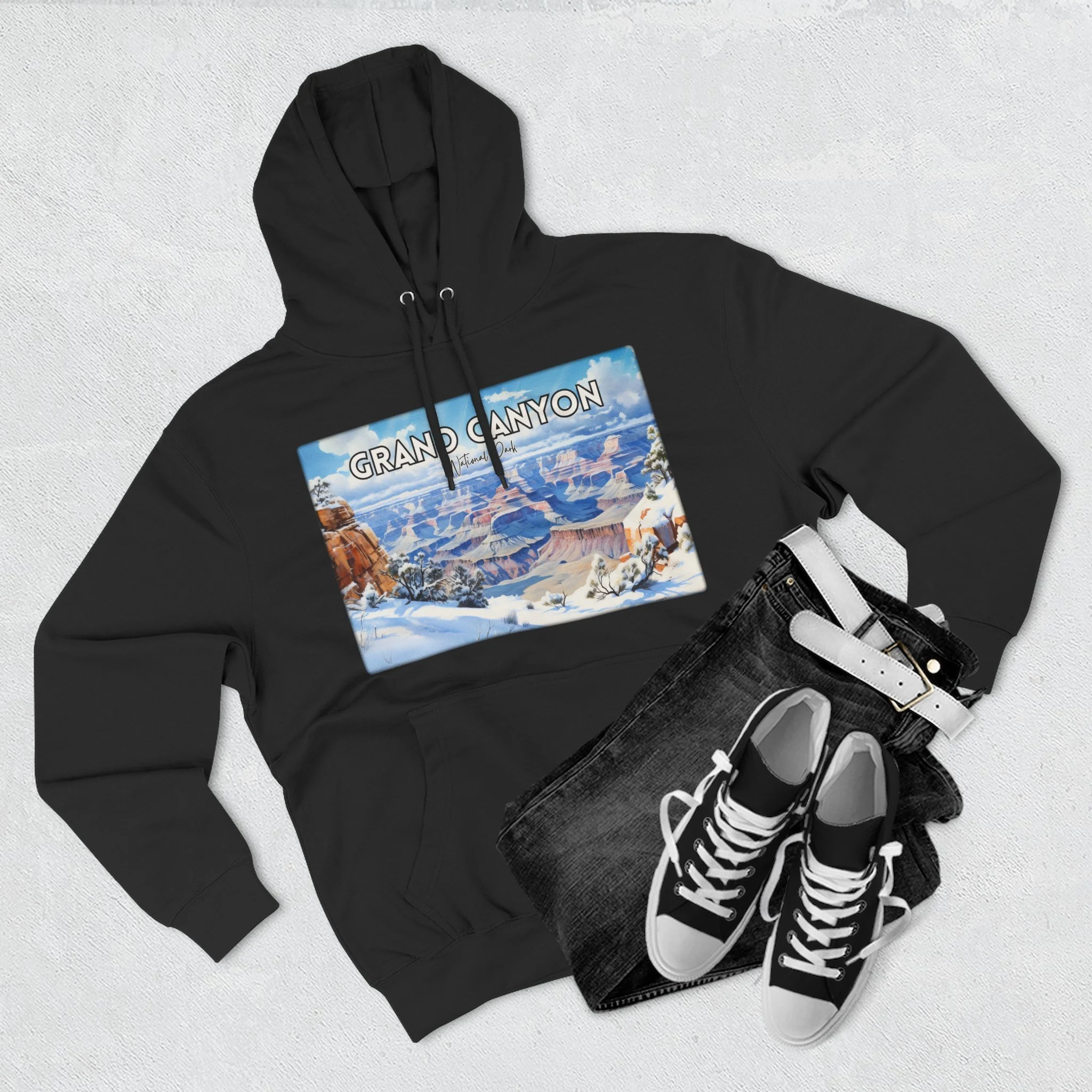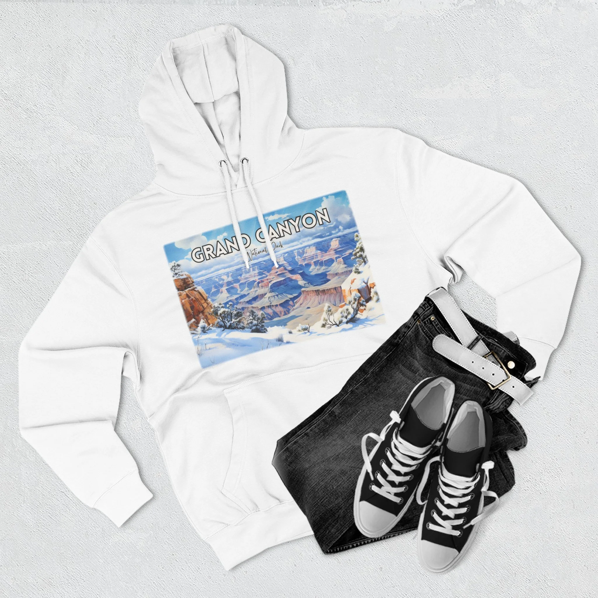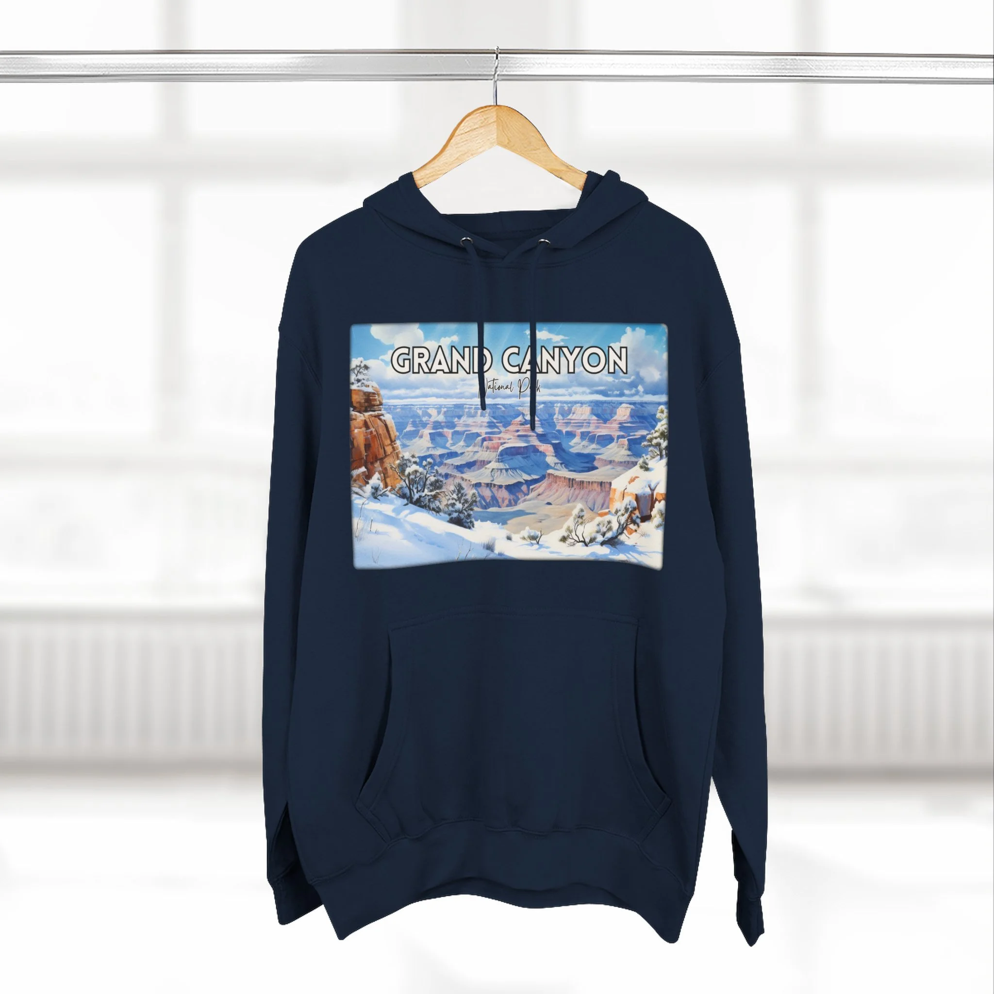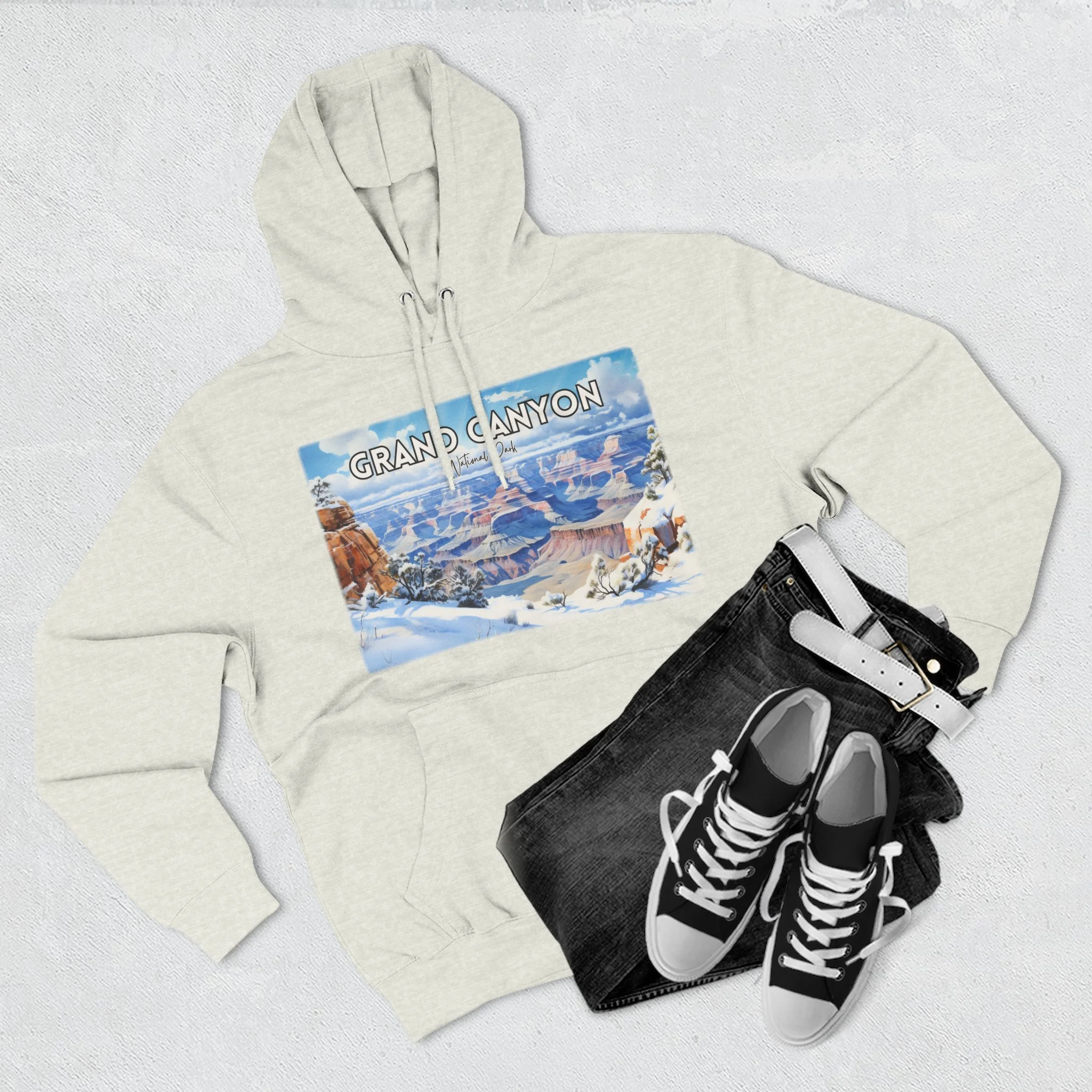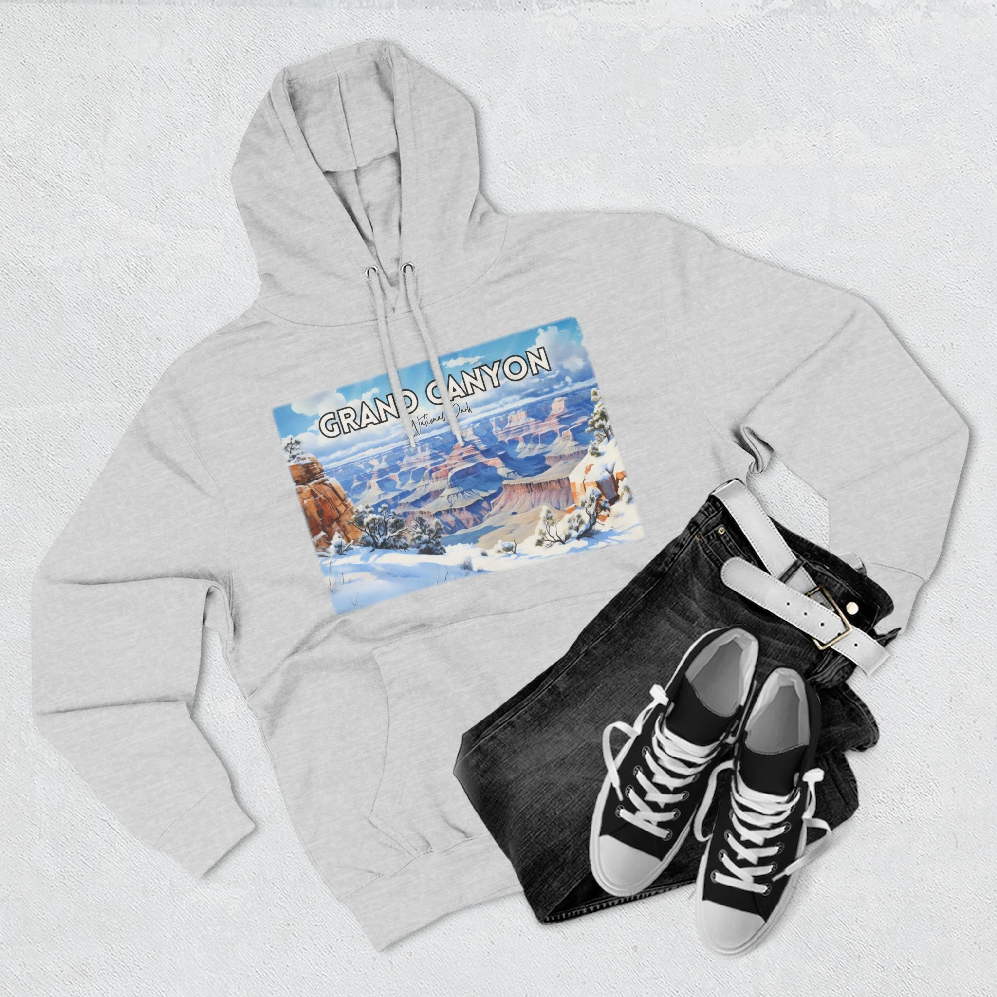 Embrace the quiet beauty of the Grand Canyon in winter with this hoodie featuring a delicate watercolor design of snow-dusted cliffs and serene skies. Capturing the stillness and contrast of the season, the artwork offers a fresh take on the iconic Arizona landscape. Made for comfort and warmth, this unisex pullover is ideal for national park enthusiasts, winter travelers, and lovers of soft, nature-inspired art. Whether you're reminiscing about a chilly canyon hike or dreaming of desert snowfall, this hoodie is a cozy, artistic reminder of the season’s quiet power.