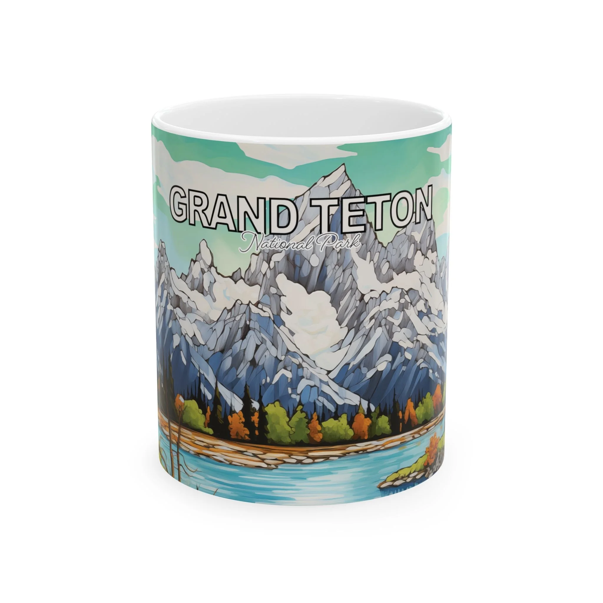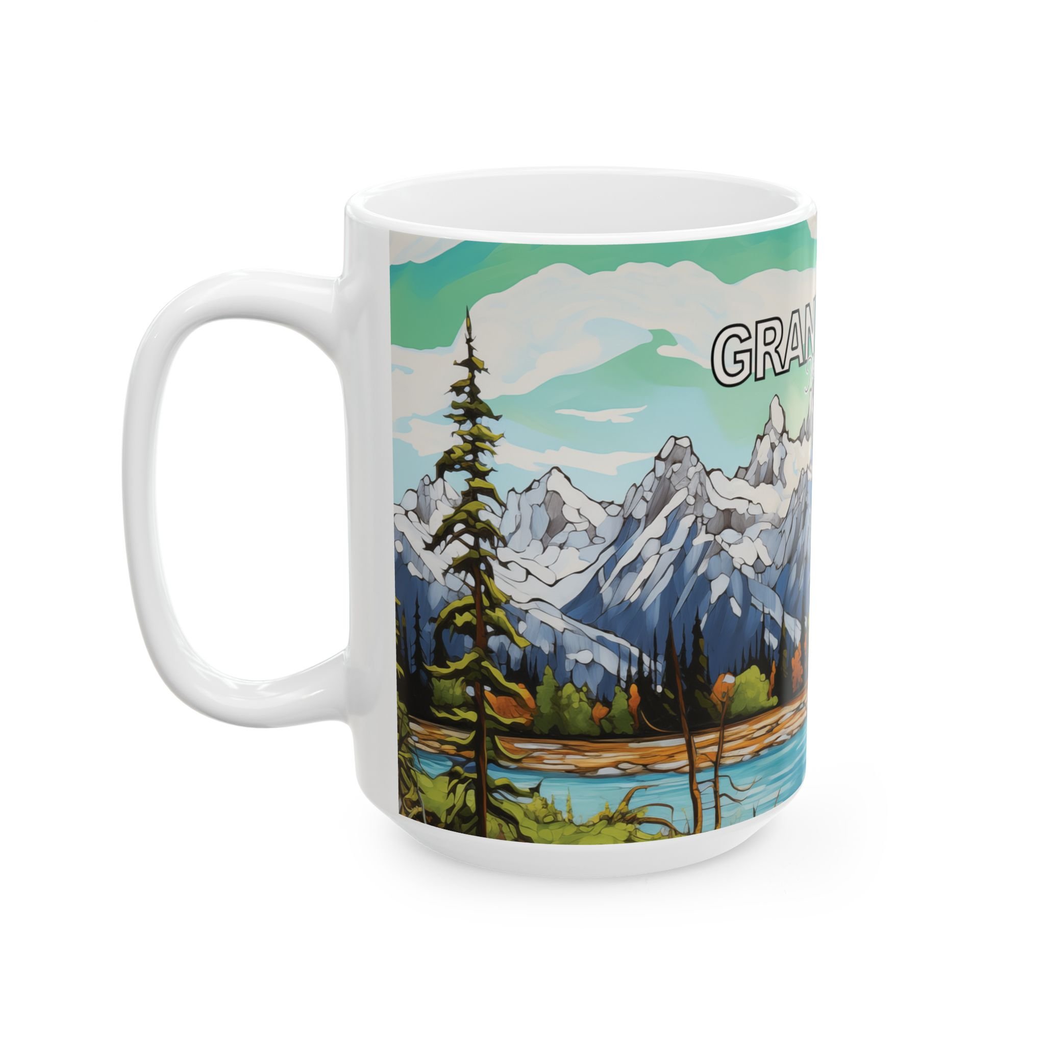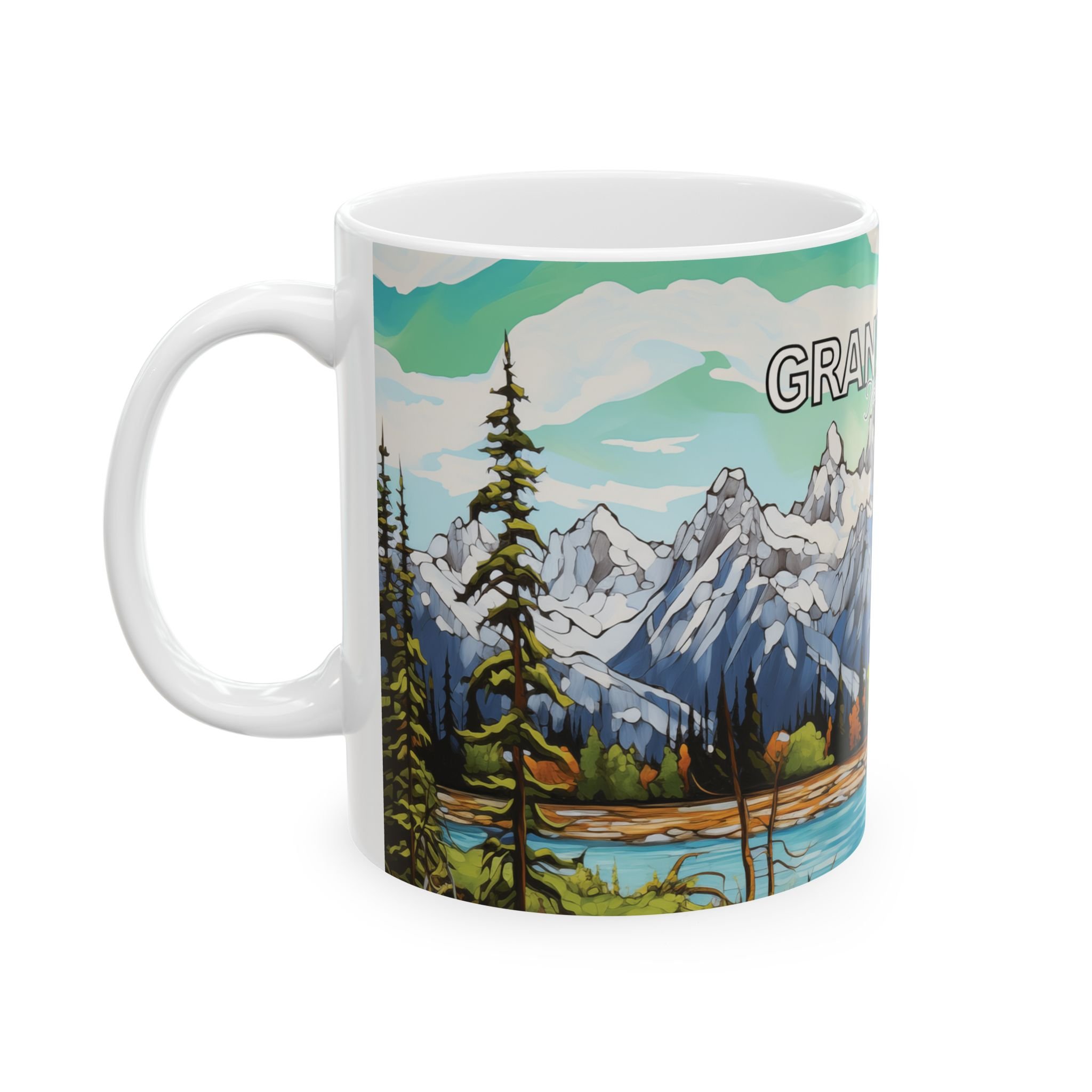 Grand Teton Abstract Aqua Sky Mug Scenic Mountain Landscape Coffee Cup