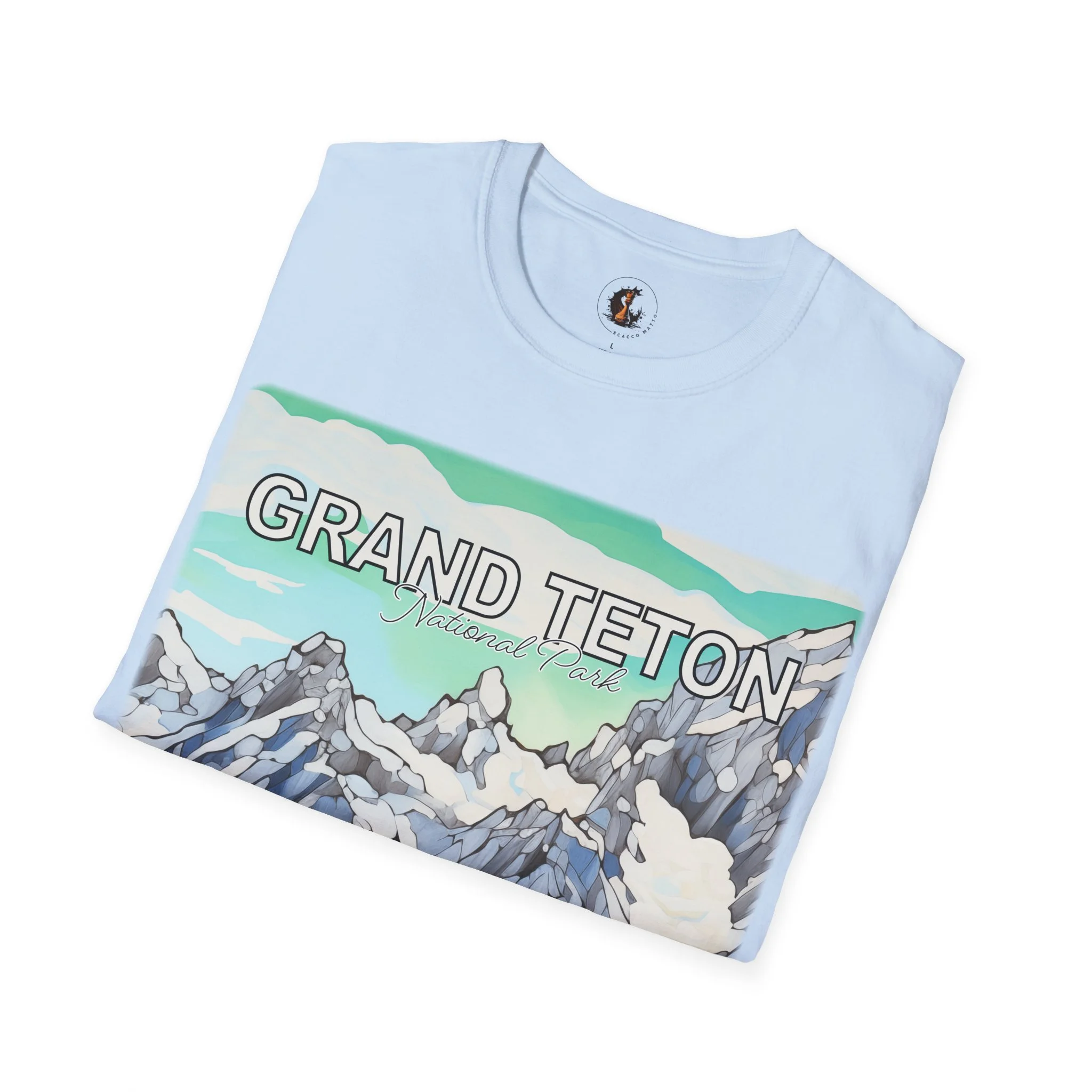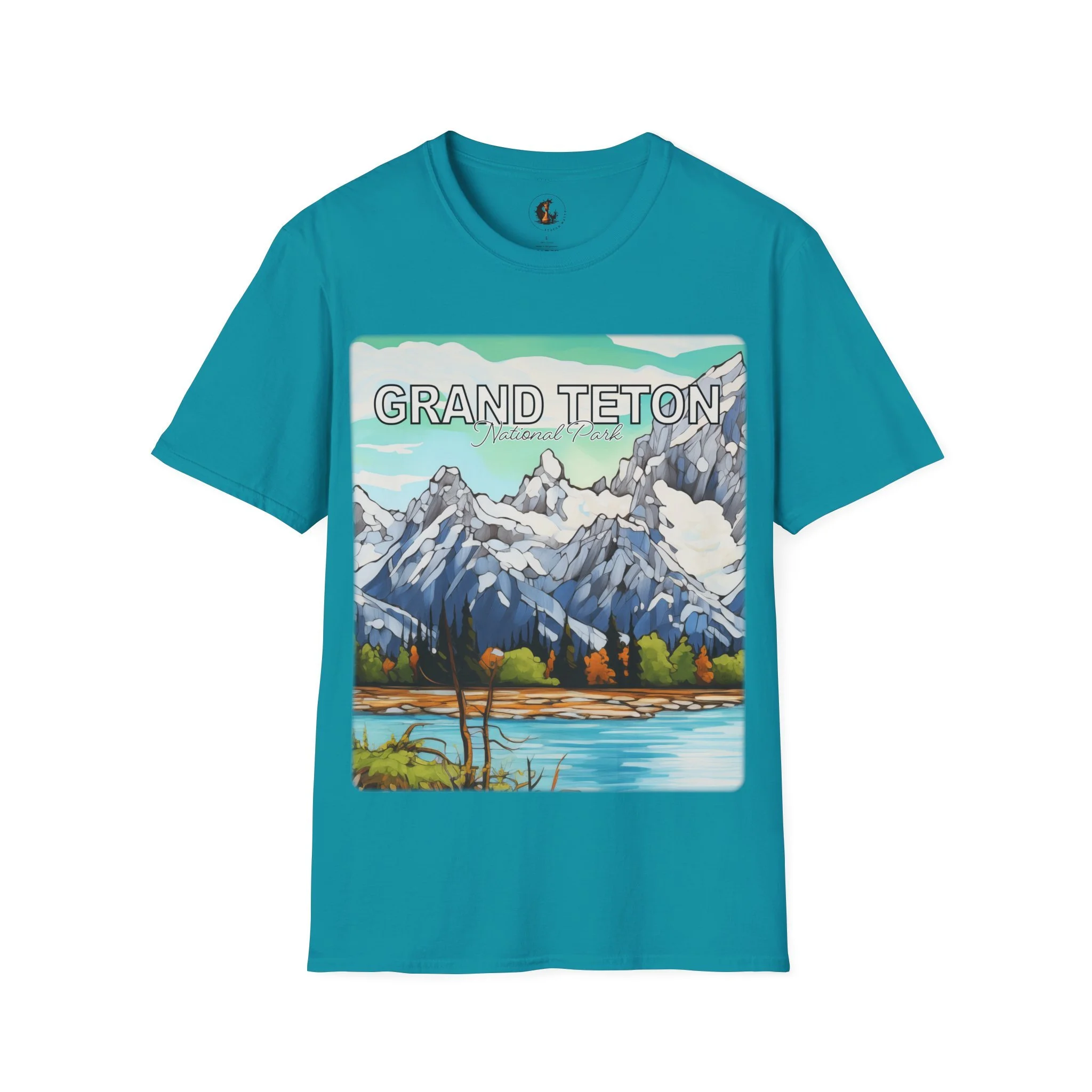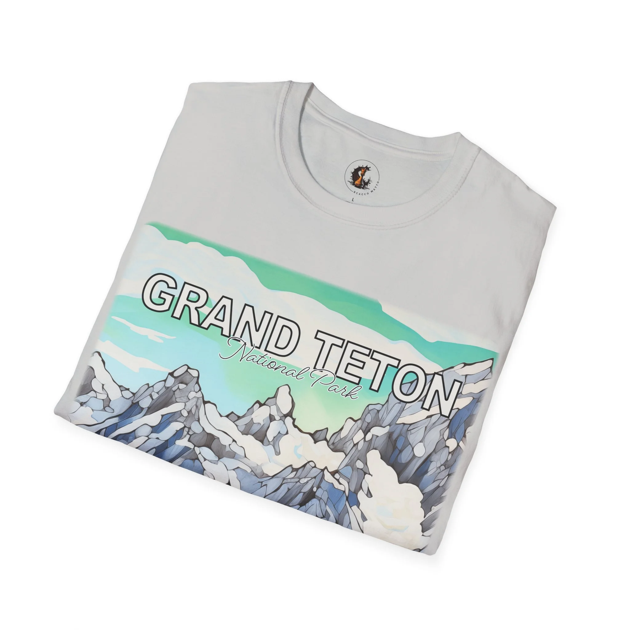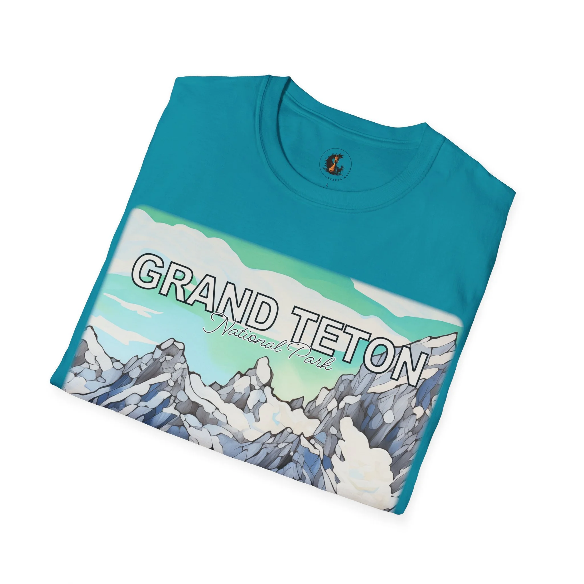 Grand Teton Abstract Aqua Sky T Shirt Scenic Mountain Landscape Tee