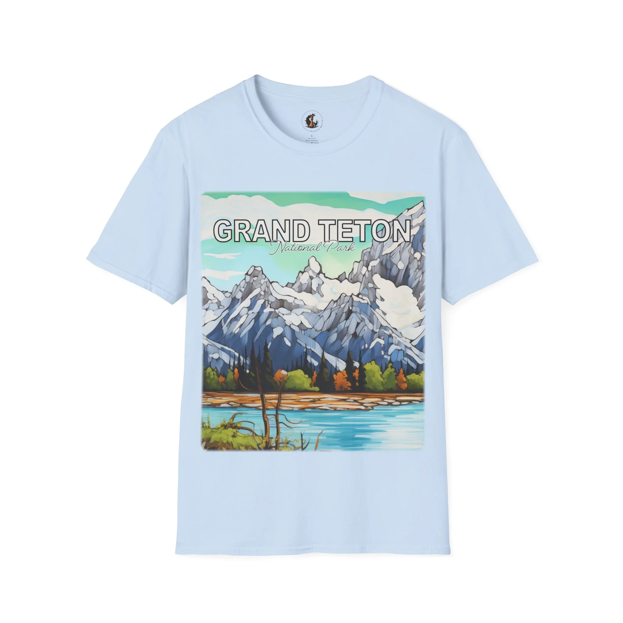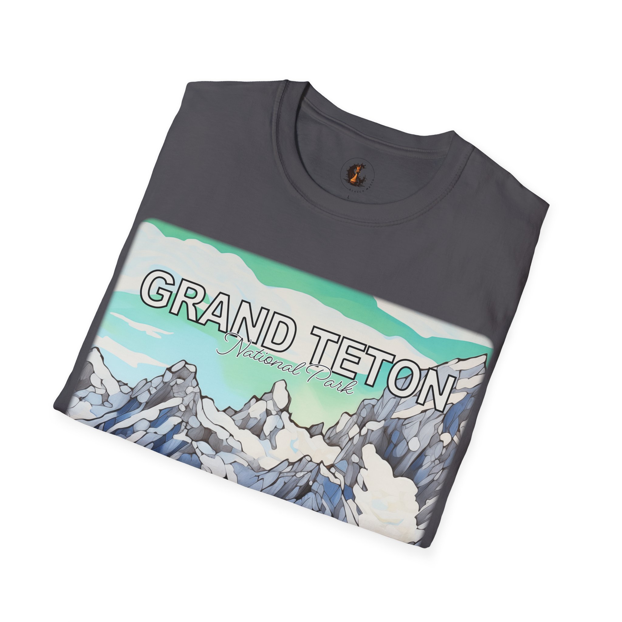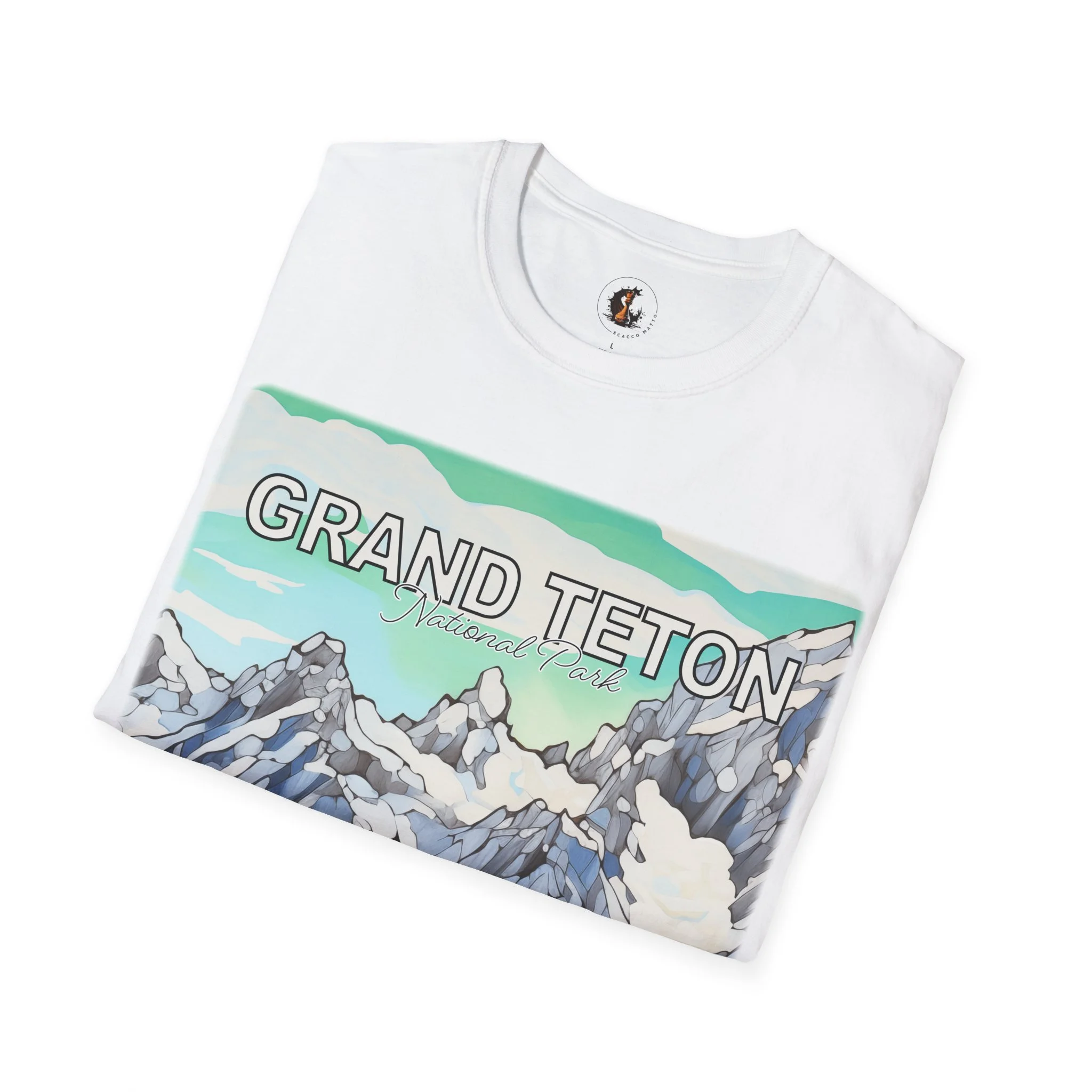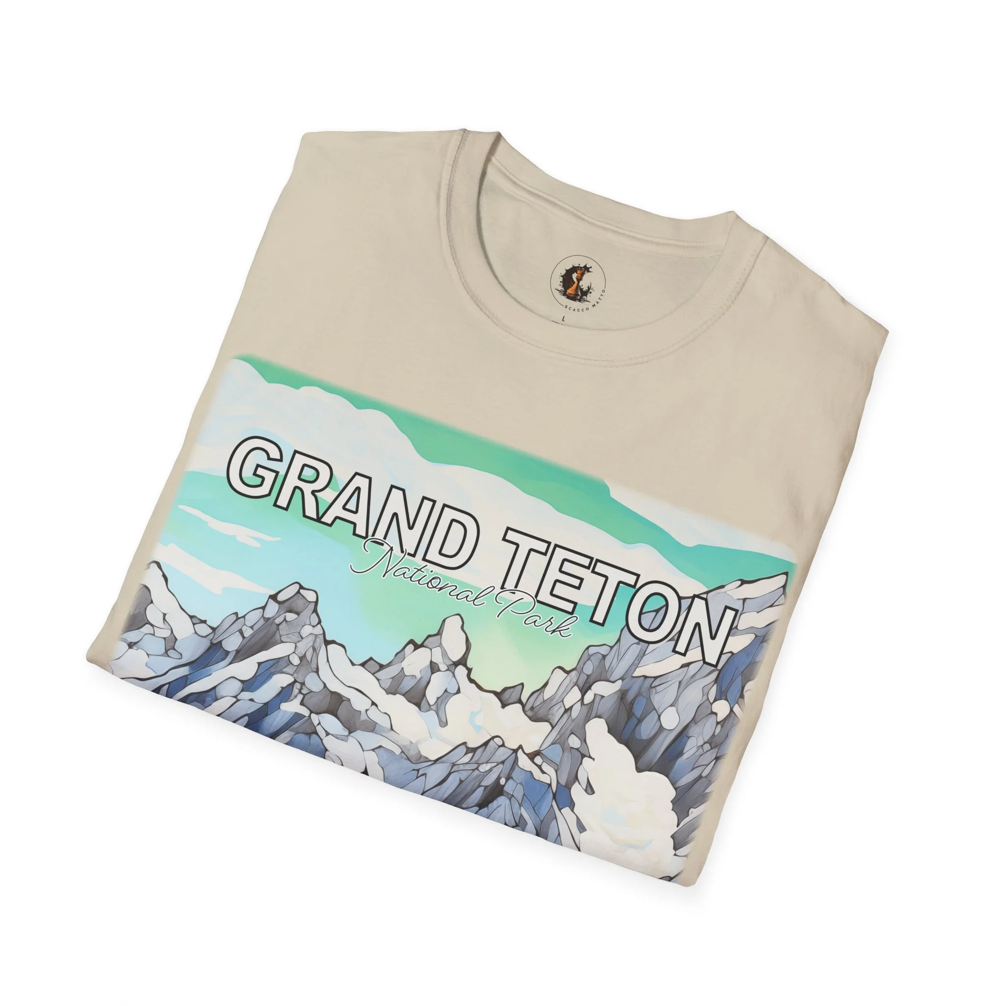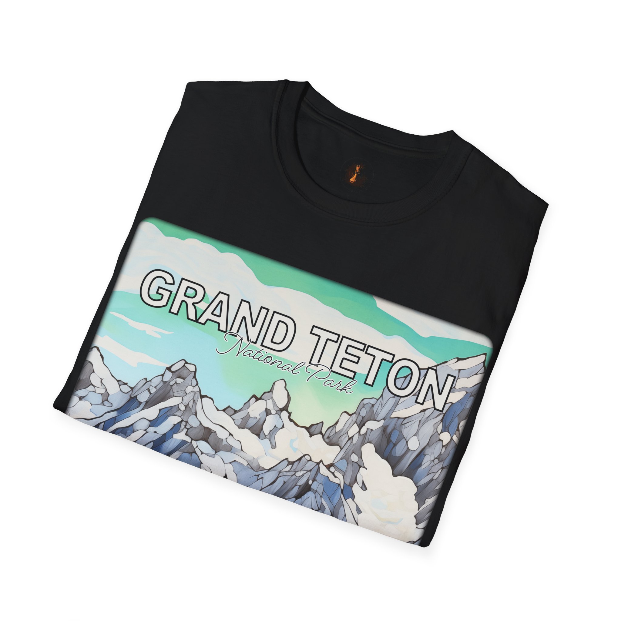 Grand Teton Abstract Aqua Sky T Shirt Scenic Mountain Landscape Tee