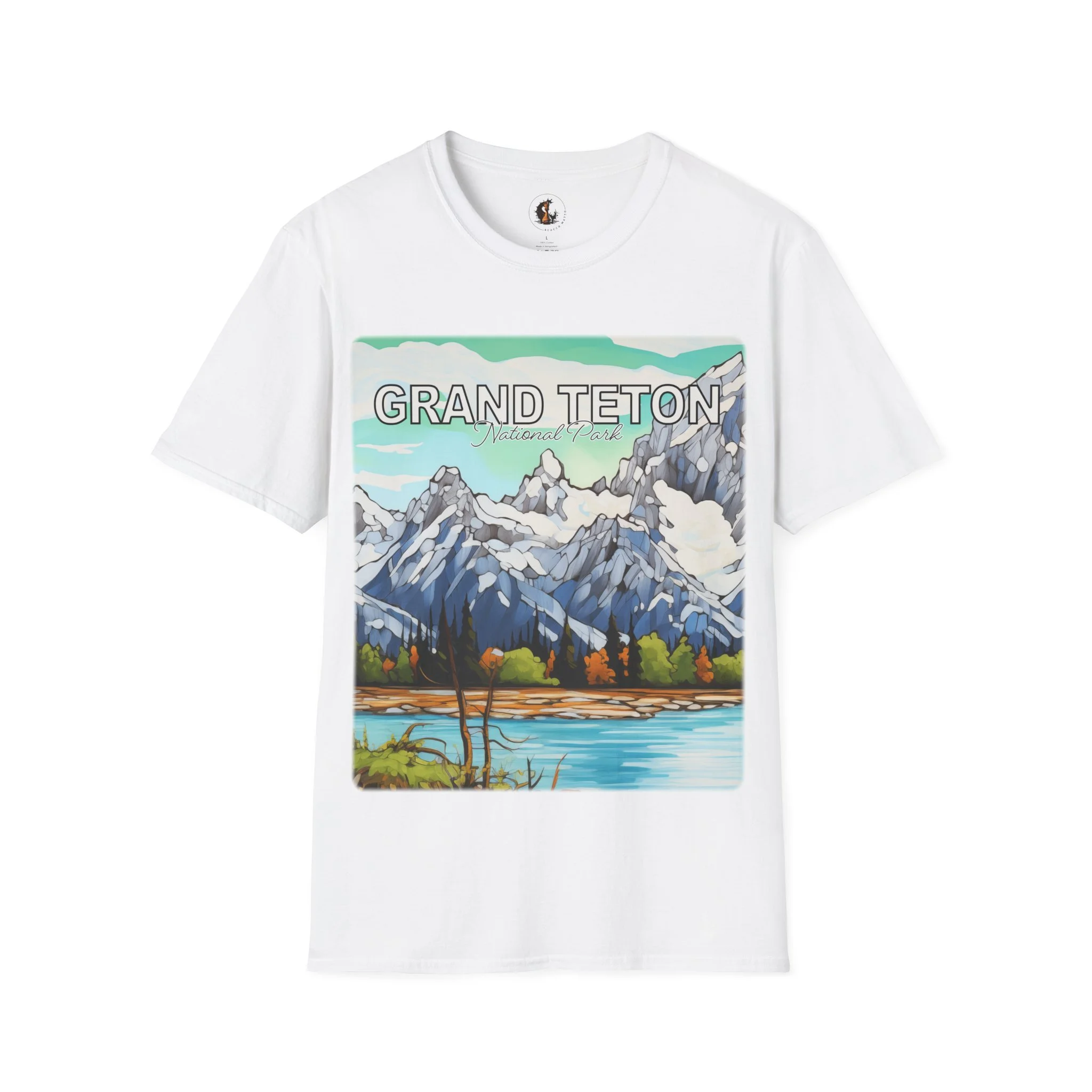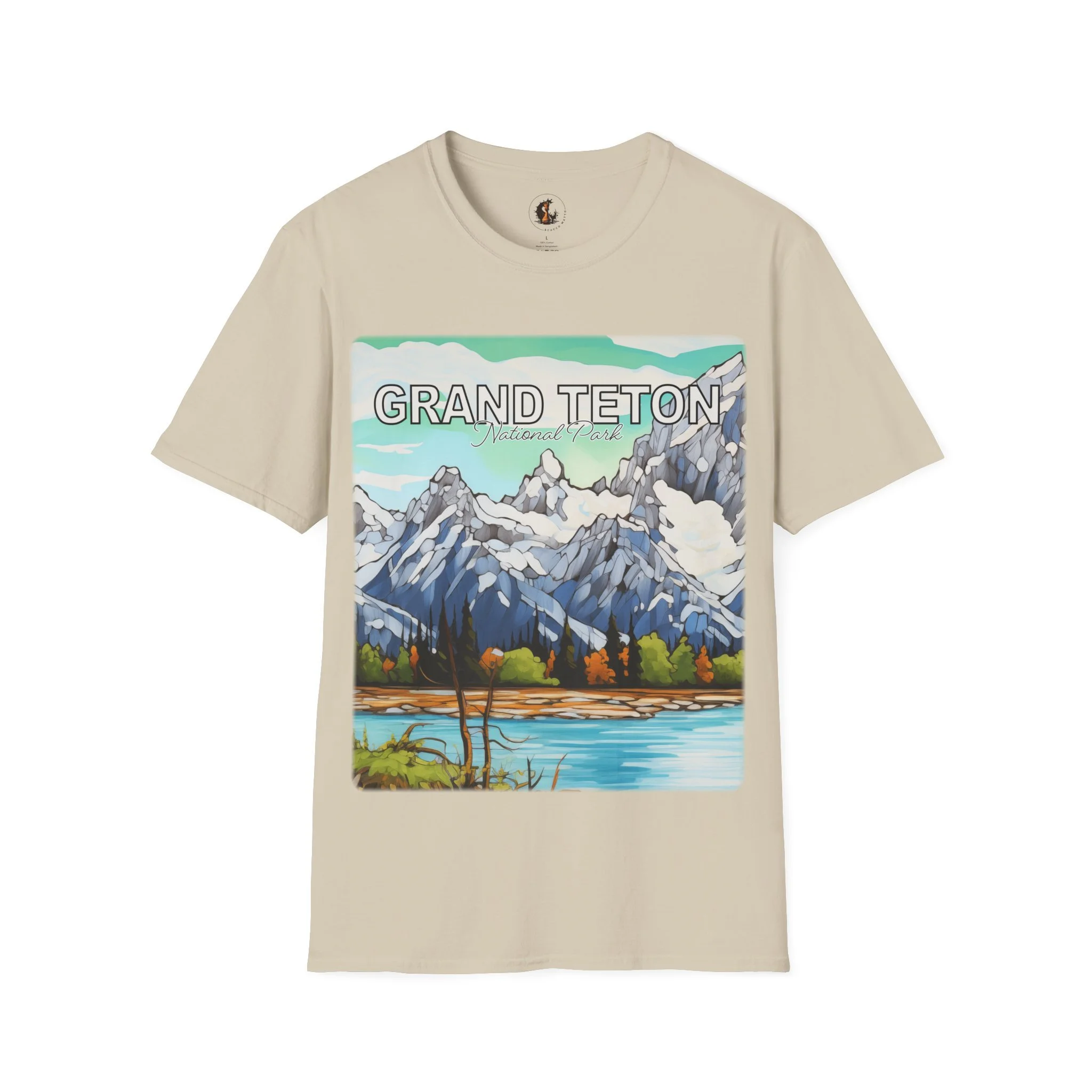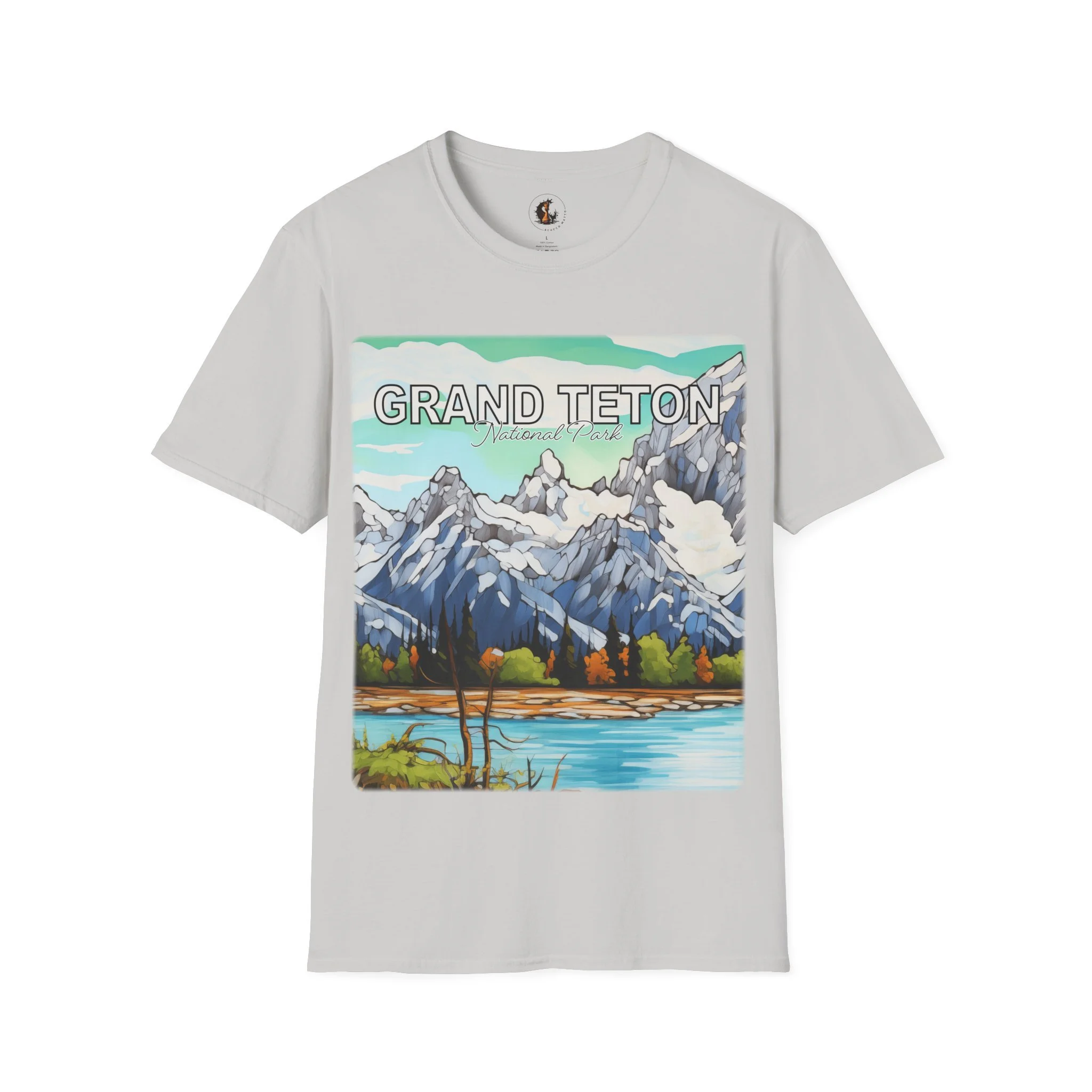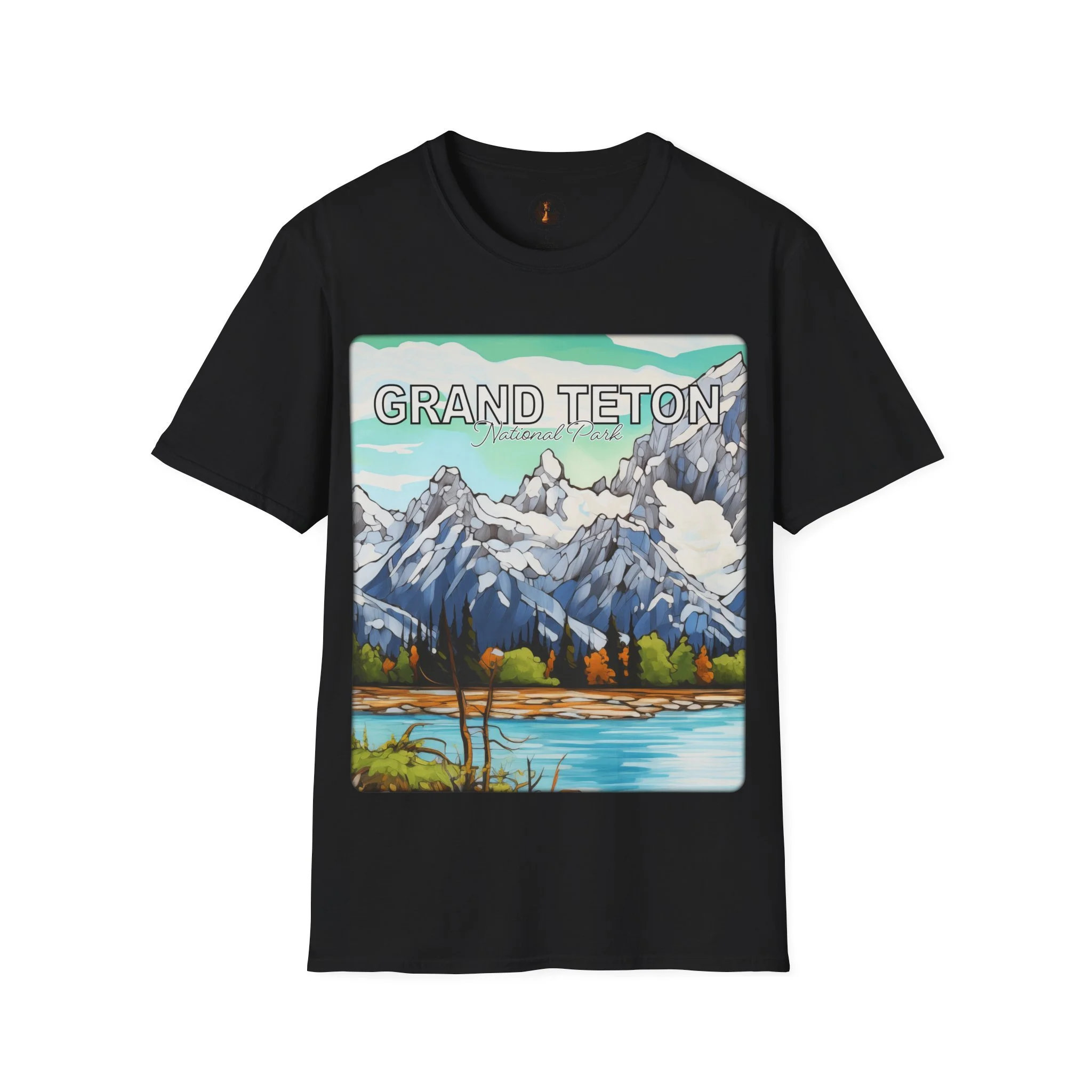 Grand Teton Abstract Aqua Sky T Shirt Scenic Mountain Landscape Tee