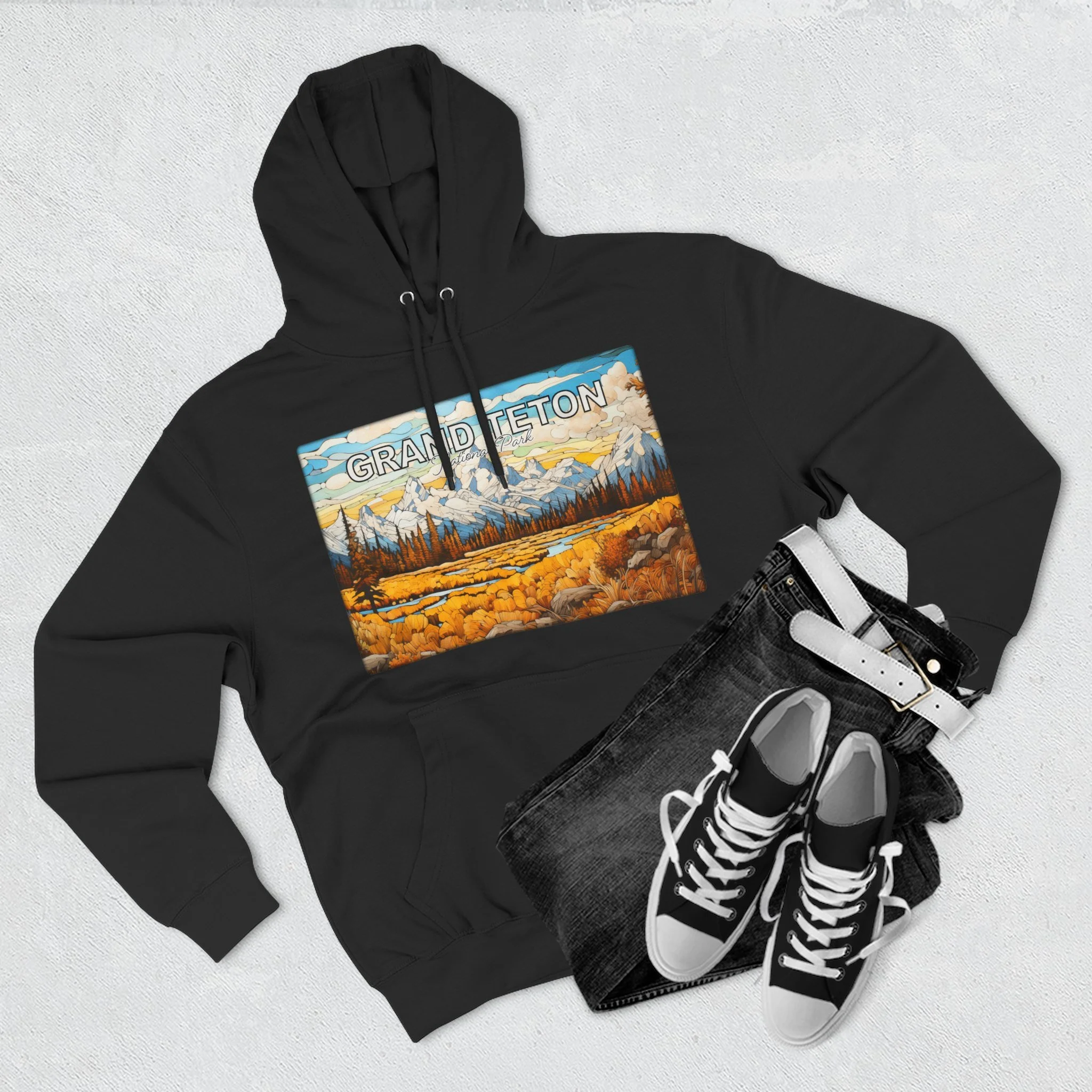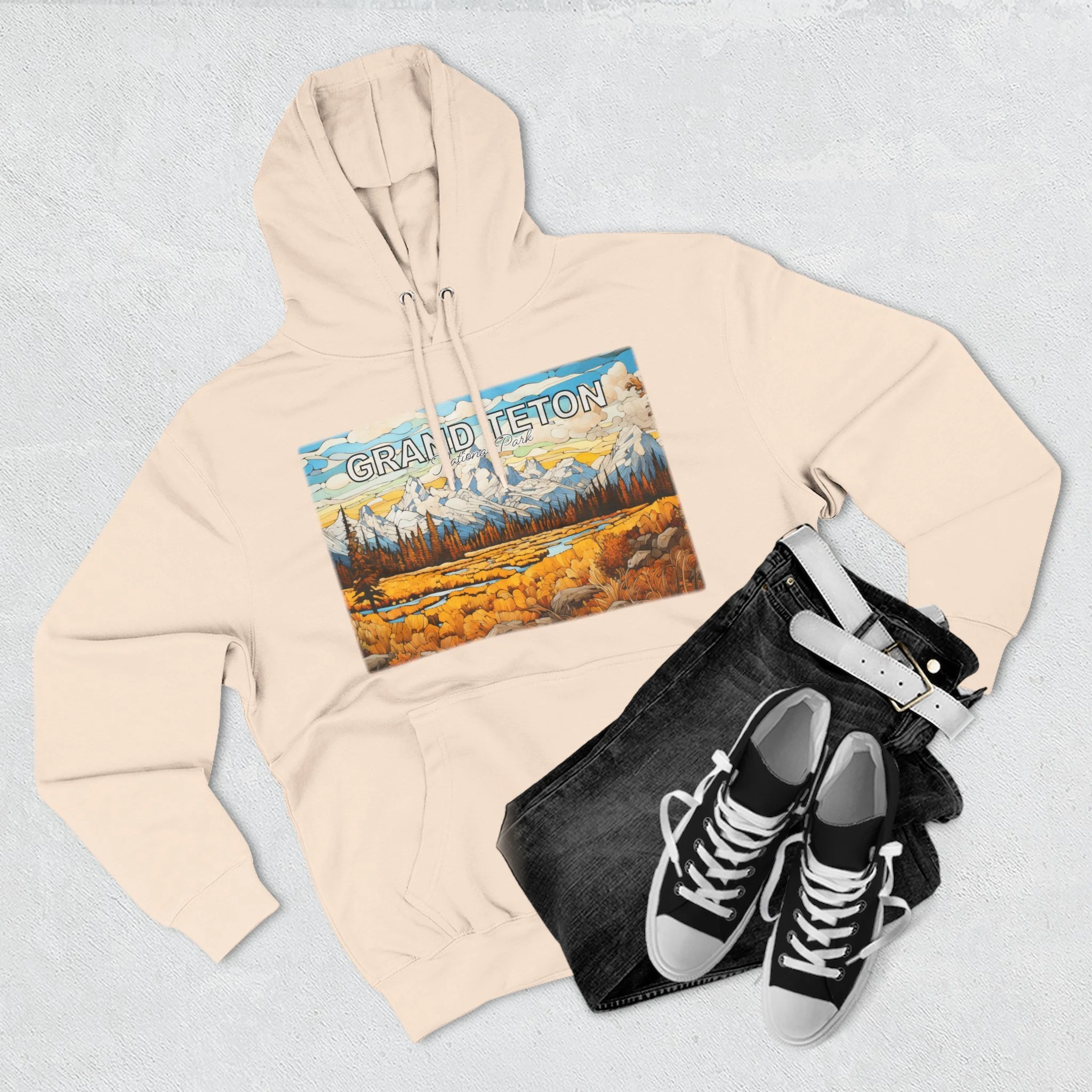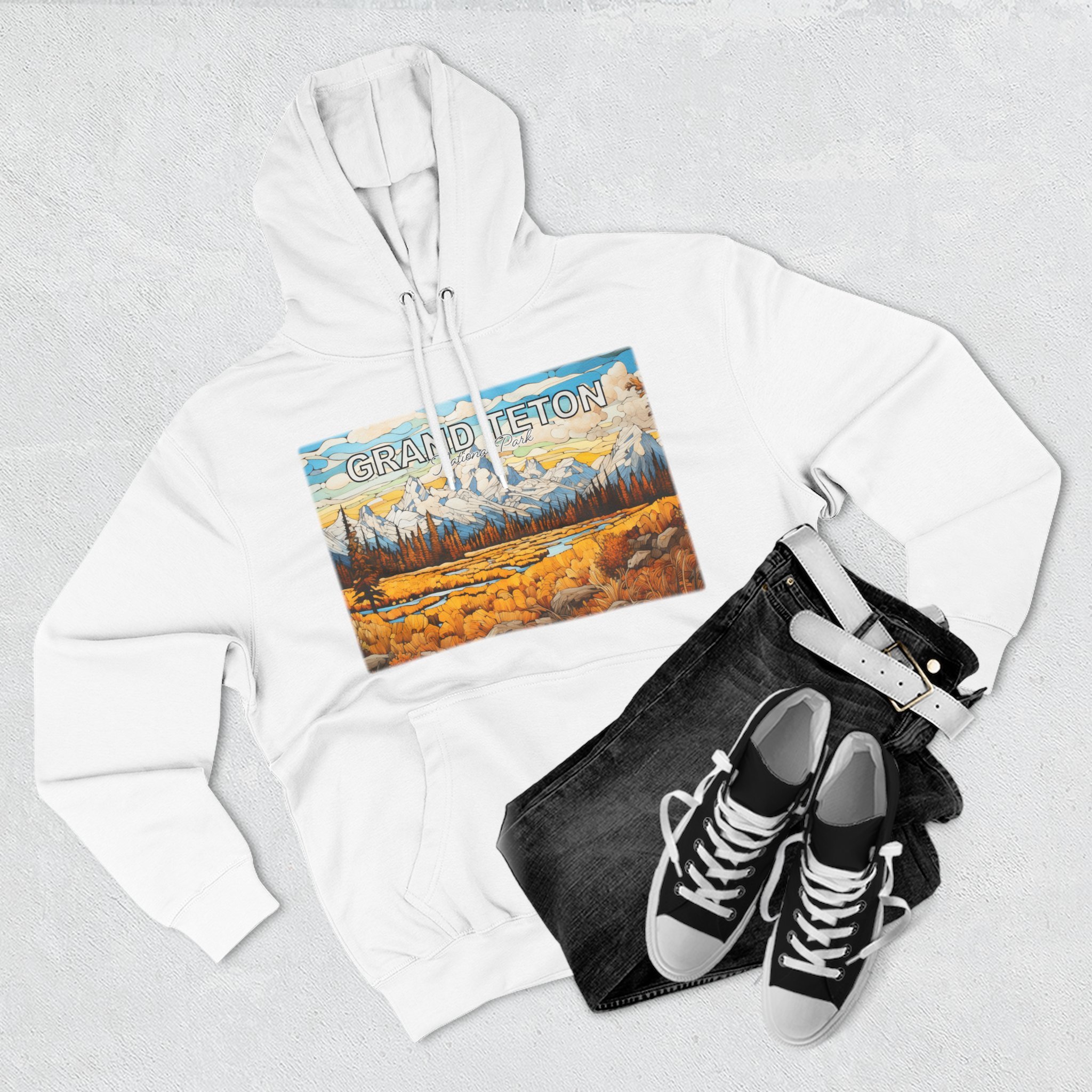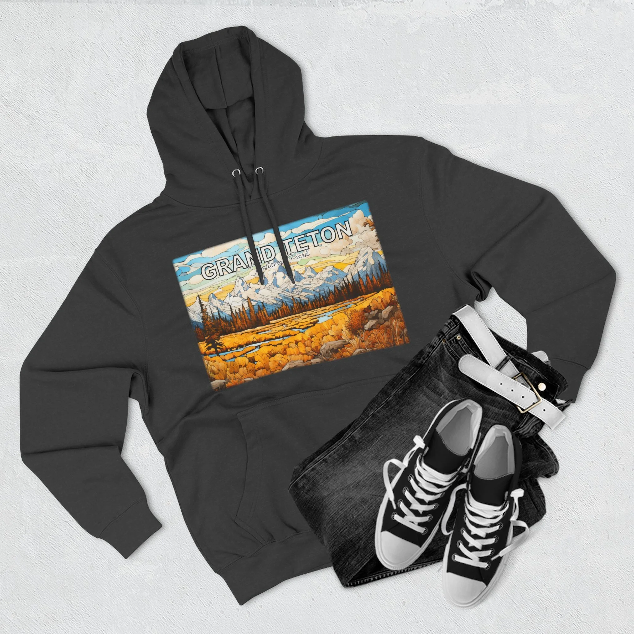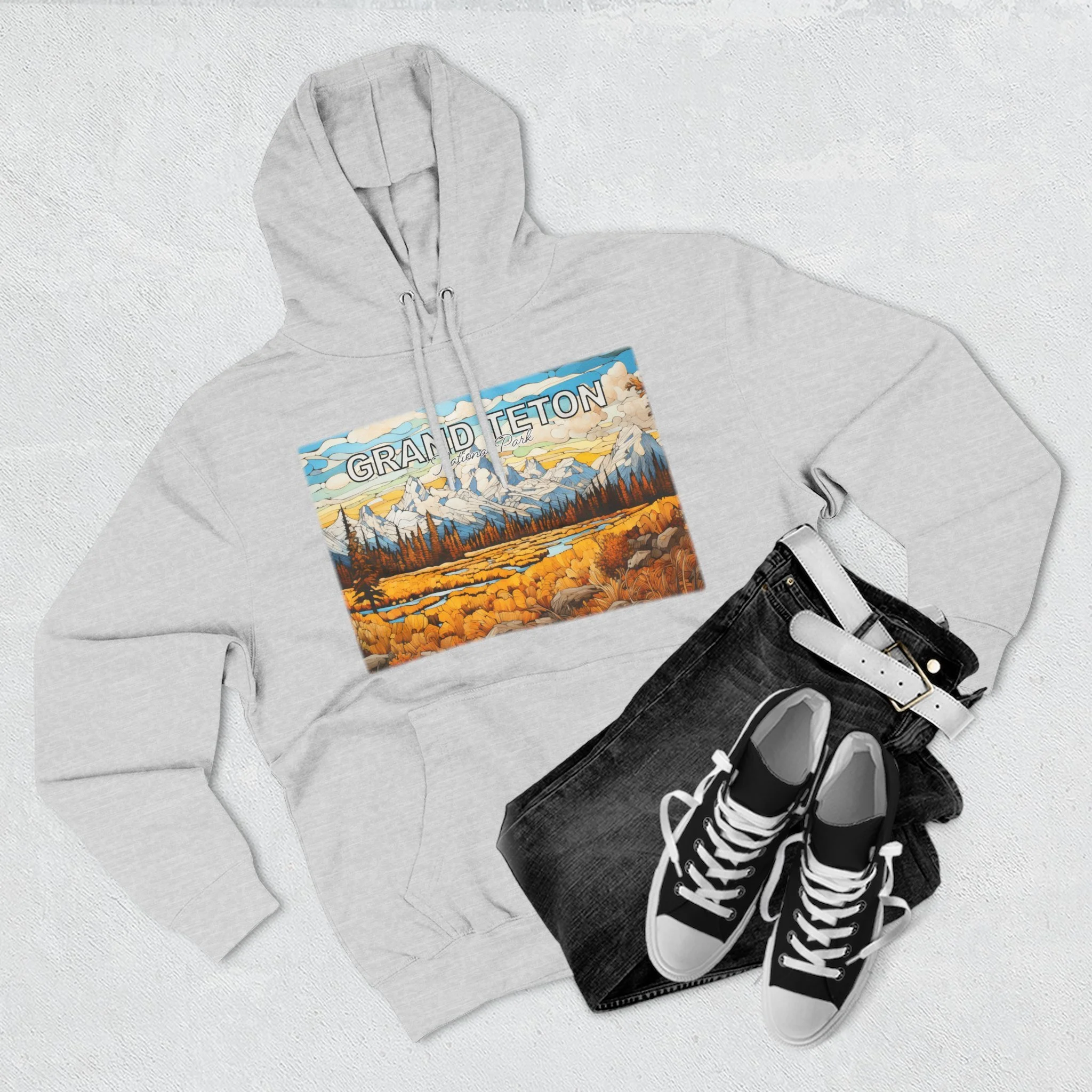 Grand Teton Fall Abstract Hoodie Scenic Mountain Landscape Pullover