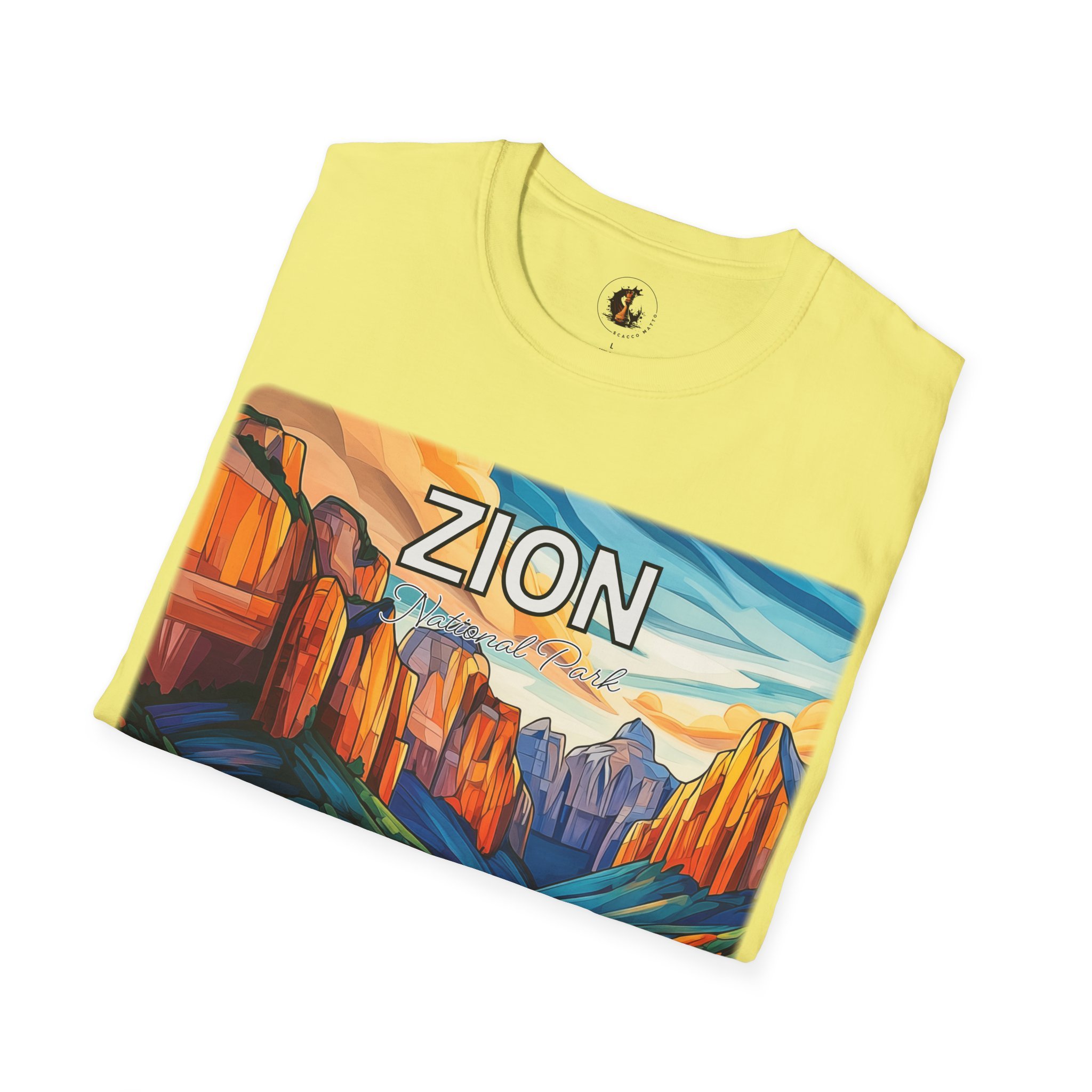 This T-shirt moves beyond standard souvenir apparel by translating the autumn atmosphere of Kolob Canyons into a more artful, elevated design. The abstract acrylic treatment gives the landscape energy and shape while still holding onto the feeling of seasonal color, canyon depth, and changing light. It offers a wearable connection to Zion that feels creative, warm, and visually distinctive.