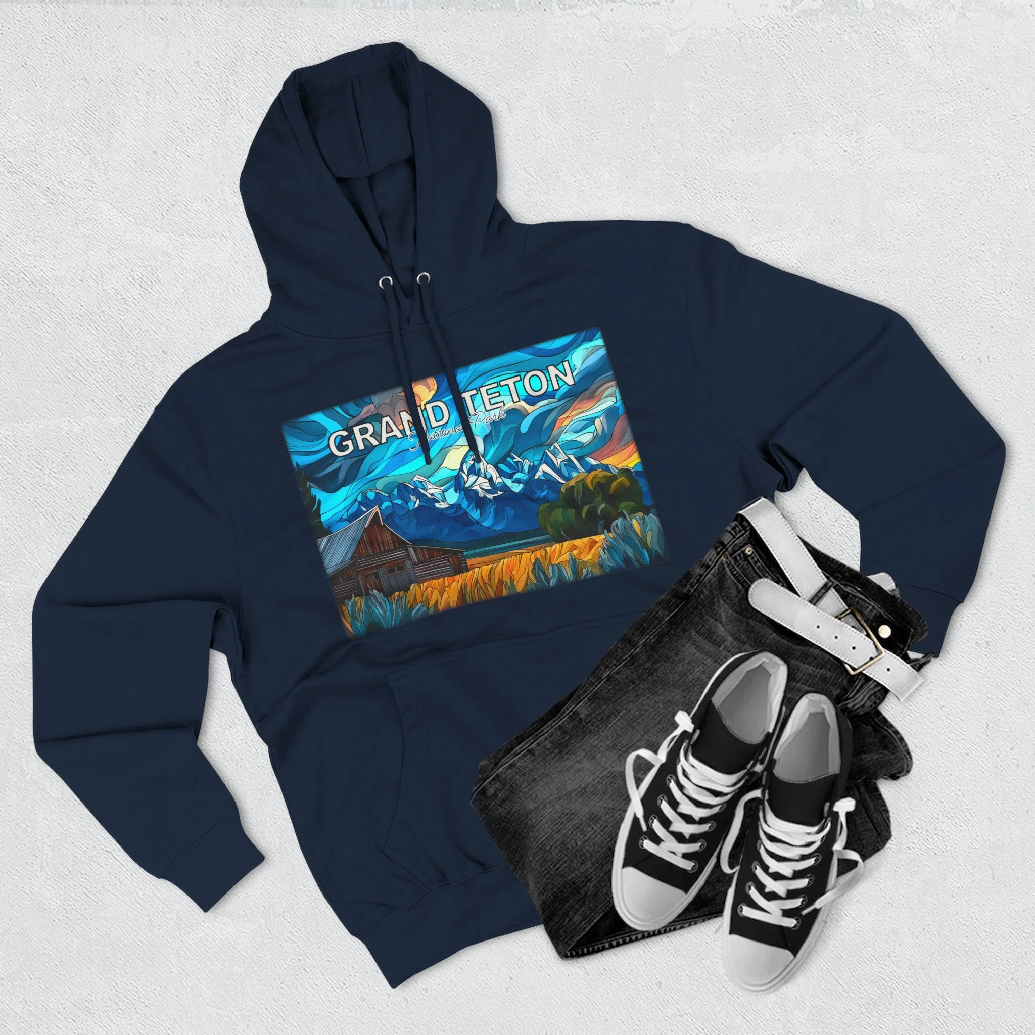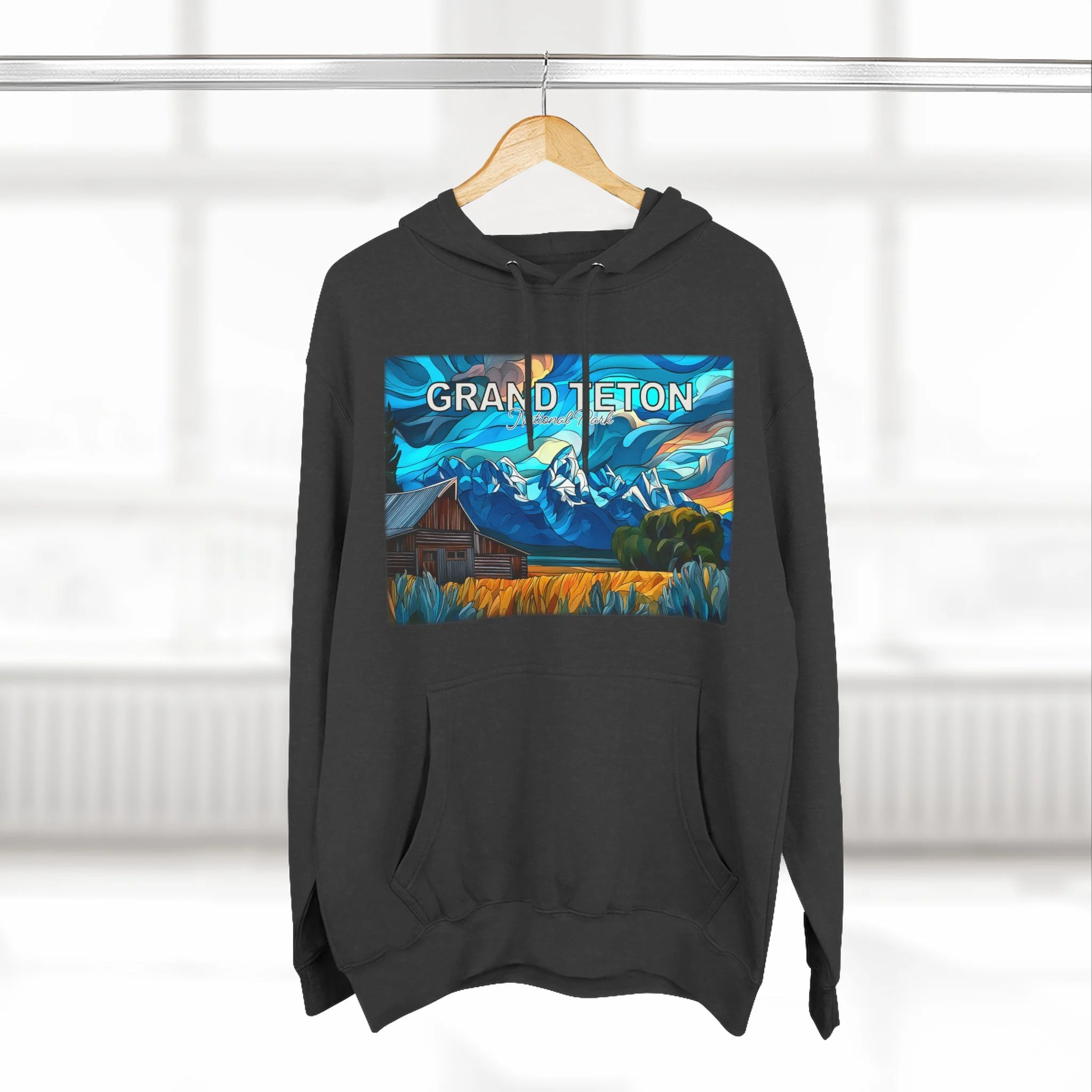 This hoodie is ideal for Grand Teton National Park lovers, hikers, travelers, photographers, and anyone who wants clothing that reflects connection to landscape, memory, and atmosphere. It is especially fitting for those drawn to rustic western scenery, iconic barn views, and National Park apparel that feels more artistic and elevated than generic souvenir wear.