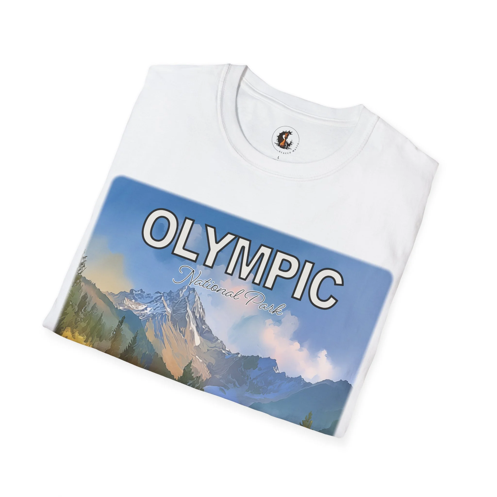 Each piece begins as original artwork created by the artist and is designed to capture the feeling of a real place. This t-shirt reflects the soft, layered beauty of Olympic in distant mist, where trees, mountains, and atmosphere come together in a way that feels grounded and serene.