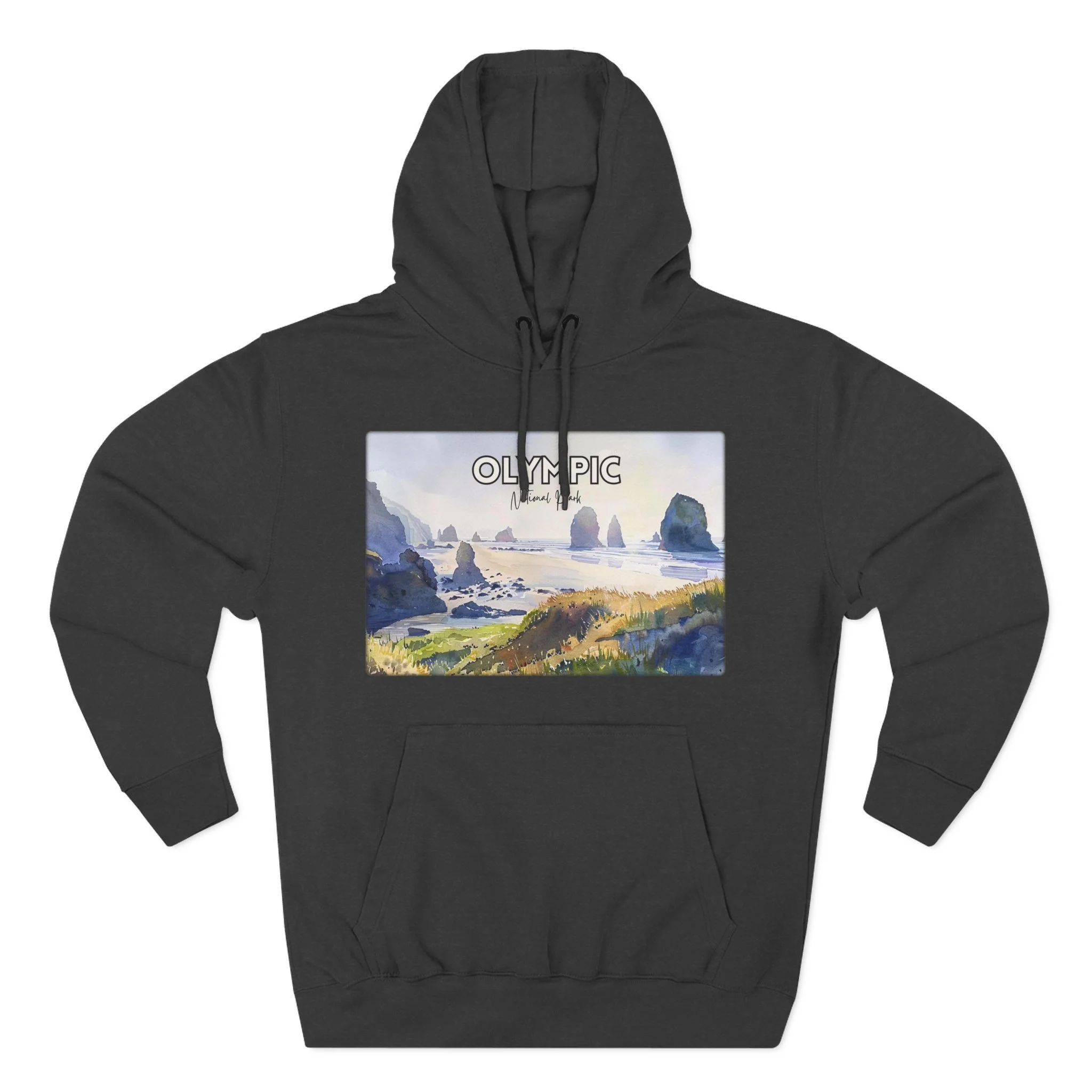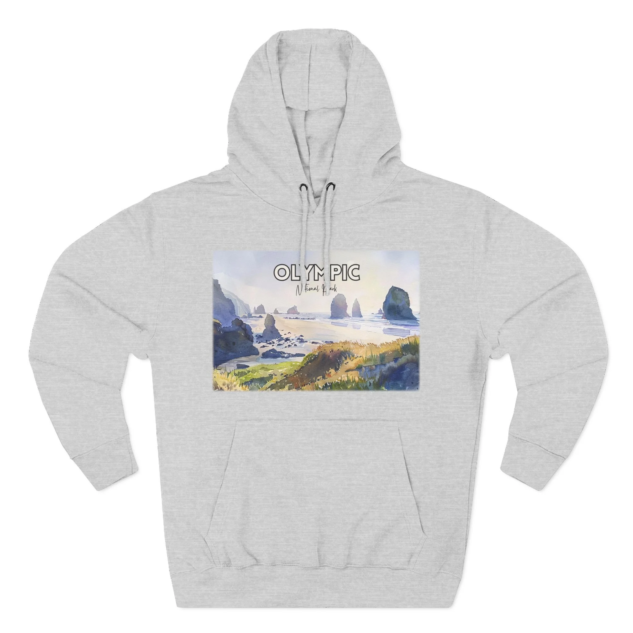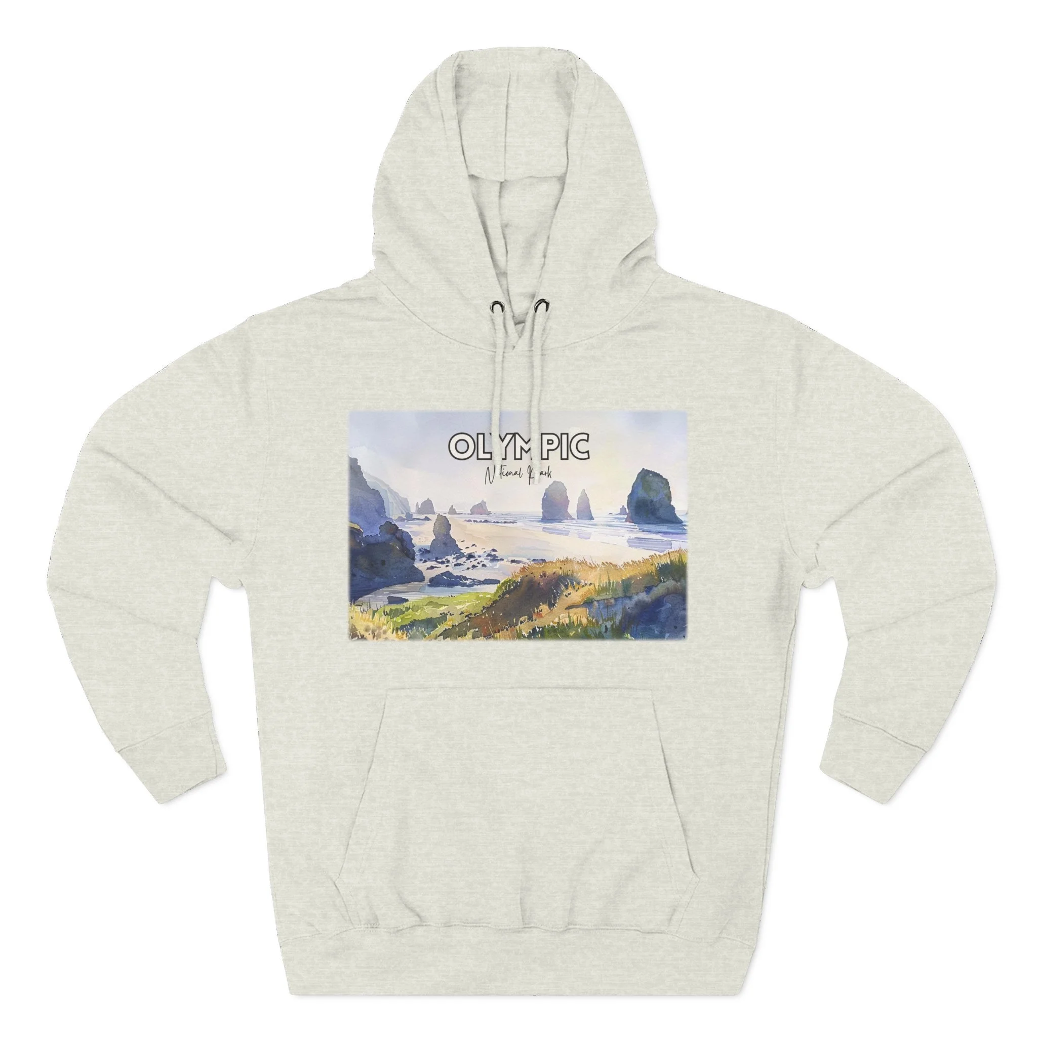 Capture the raw beauty of Washington’s wild coast with this Shi Shi Beach watercolor hoodie. Inspired by one of Olympic National Park’s most iconic beaches, the design features sea stacks rising from the ocean, misty skies, and crashing waves—all rendered in gentle watercolor tones. Printed on a soft, comfortable cotton-poly blend, this unisex hoodie is perfect for layering on foggy beach walks or cozy days at home. A must-have for nature lovers and coastal adventurers alike.