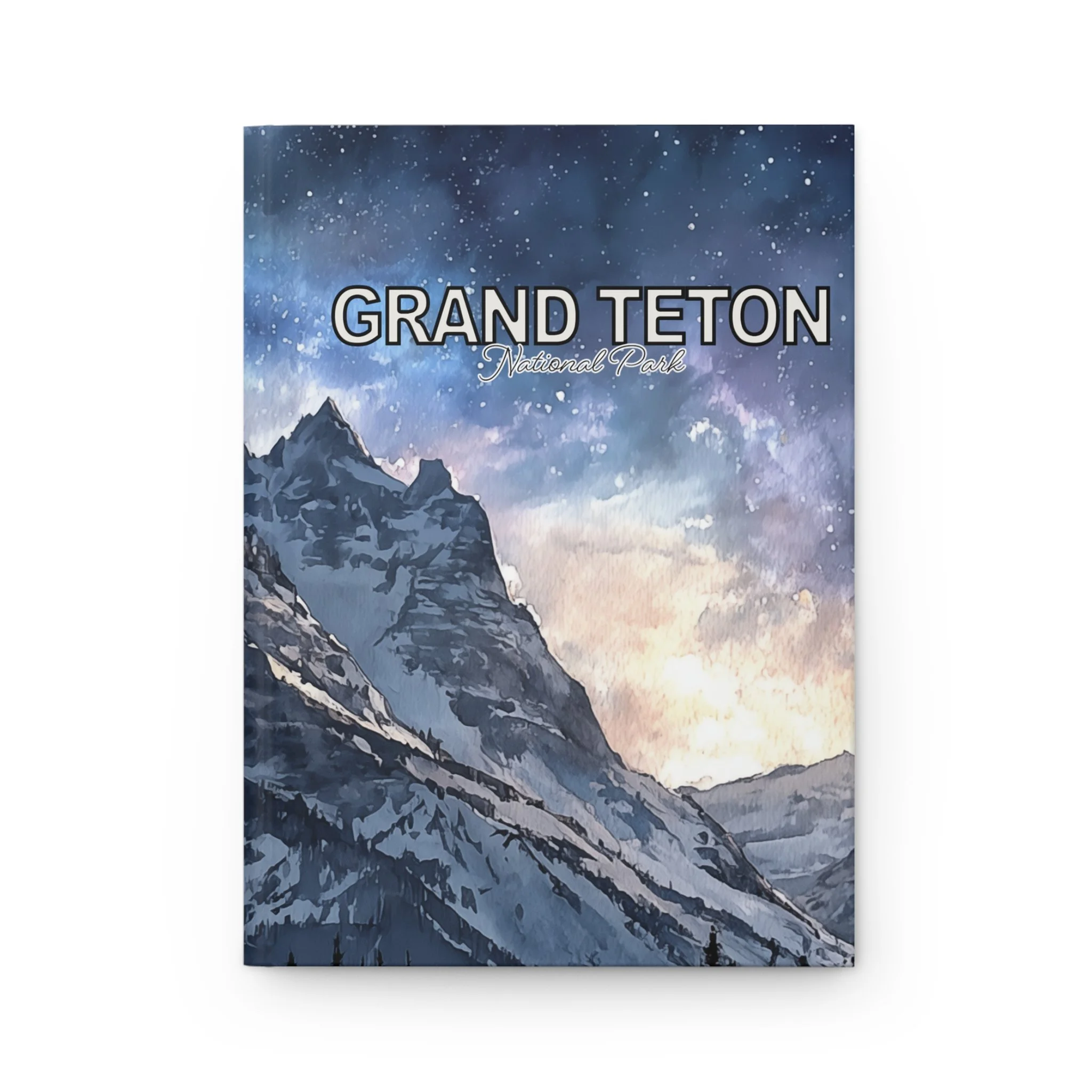 Watercolor Grand Teton National Park Night Sky Journal Scenic Mountain Landscape Notebook