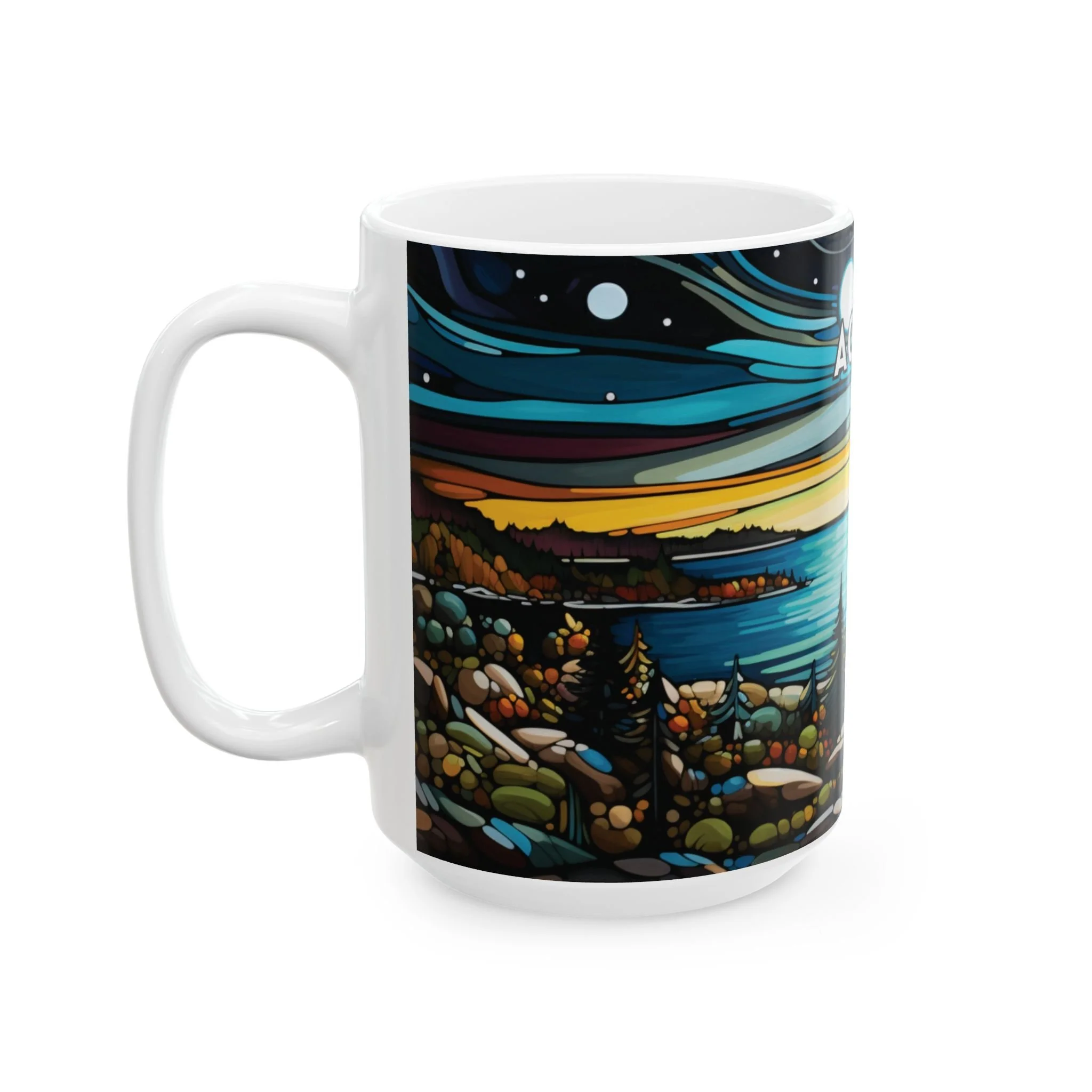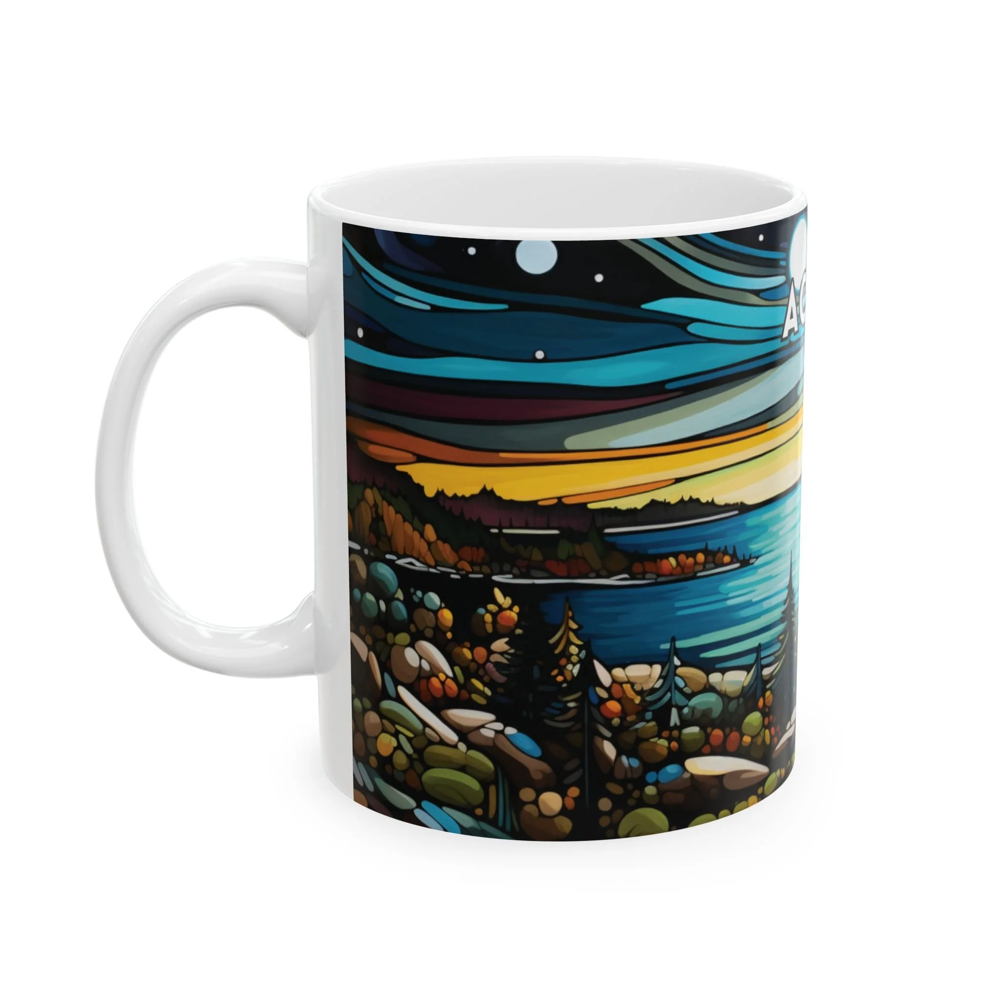 Acadia Night Sky Mug – Abstract Acrylic Art Ceramic Coffee Cup, 11oz or 15oz