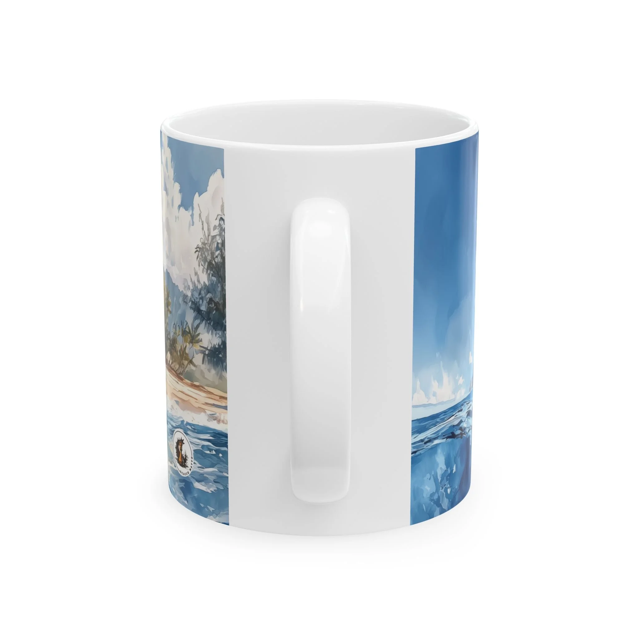 Soft watercolor tones and layered reflections wrap around the mug, offering a peaceful, immersive coastal scene with every use. Perfect for coffee, tea, or slow mornings, it brings a grounded, ocean-inspired presence to your daily routine.