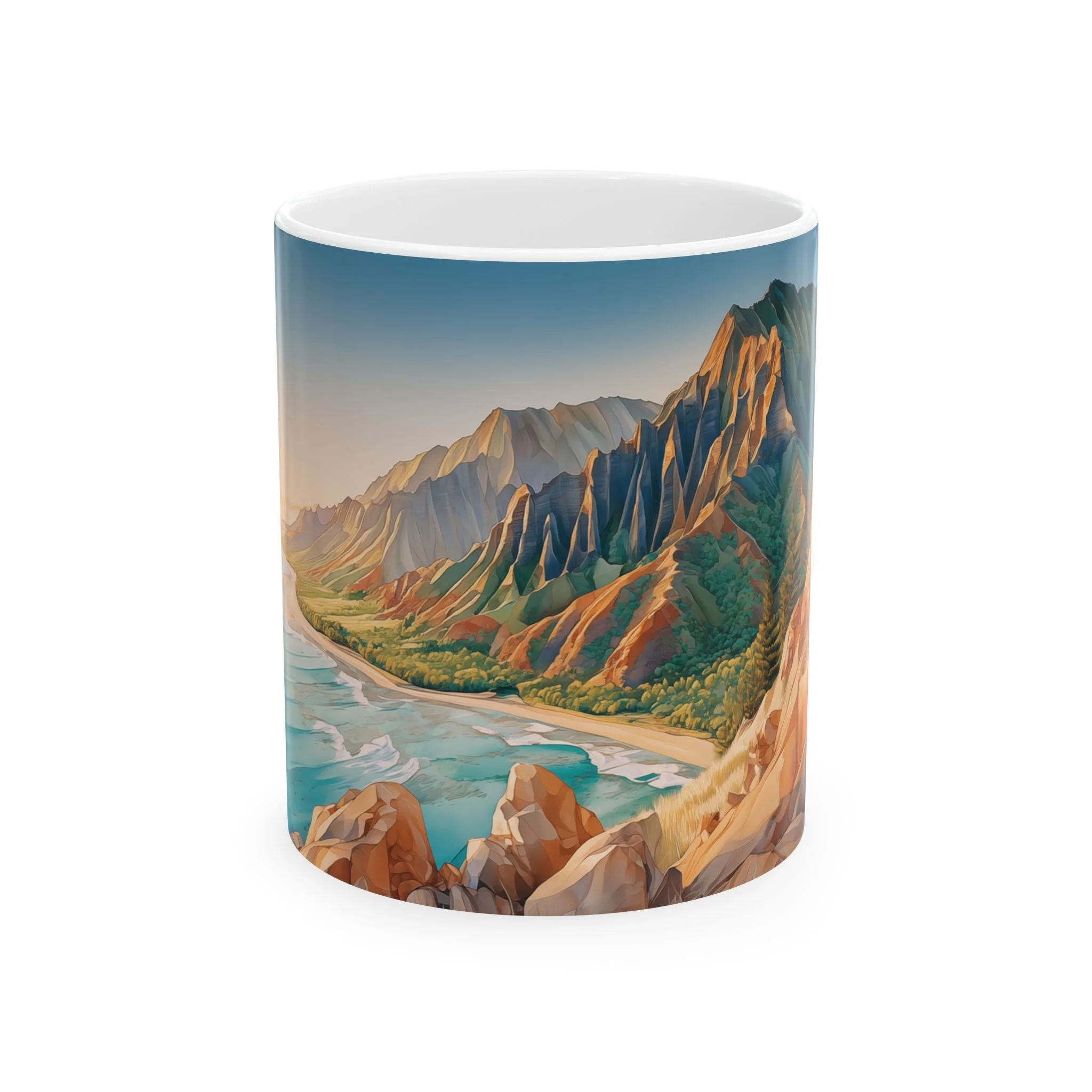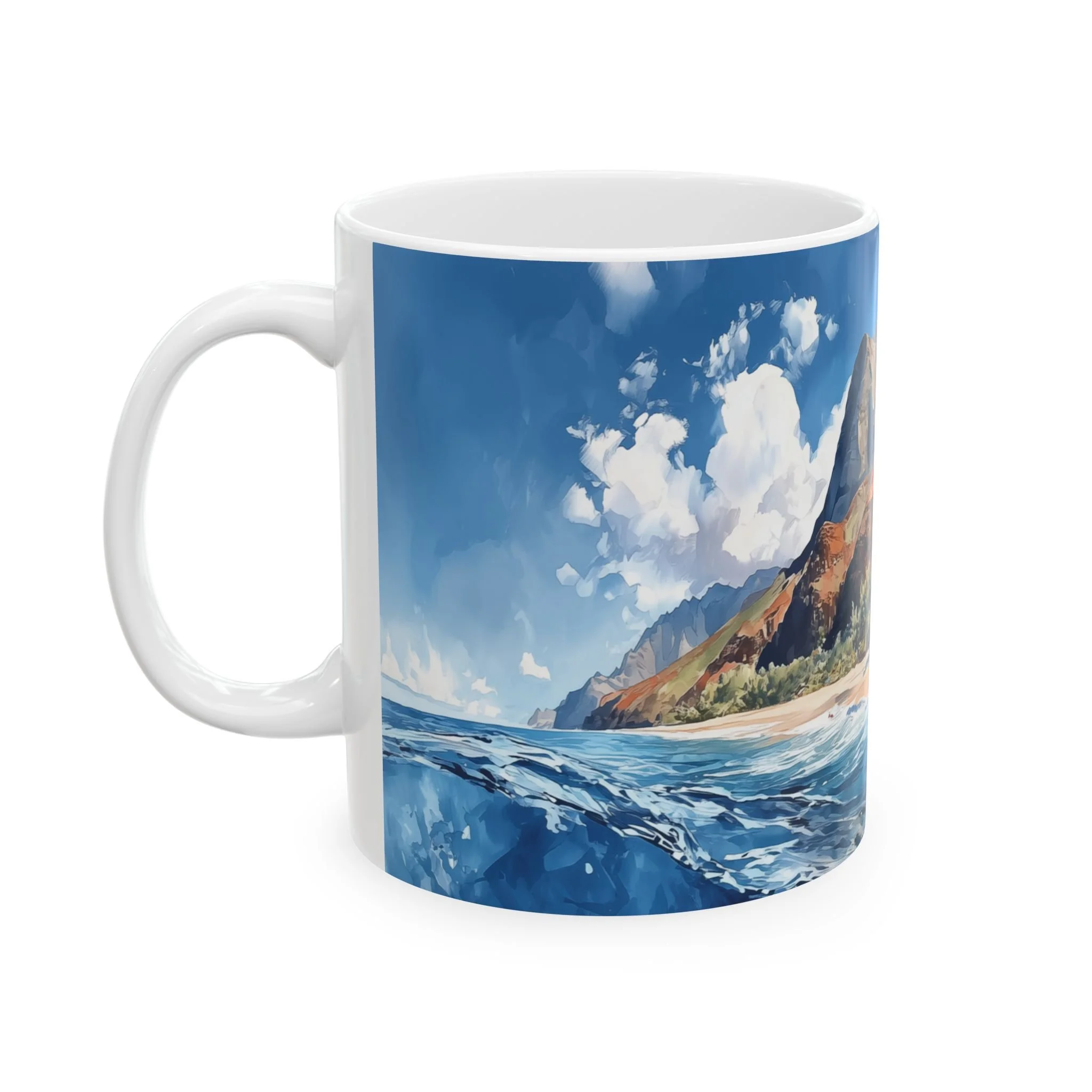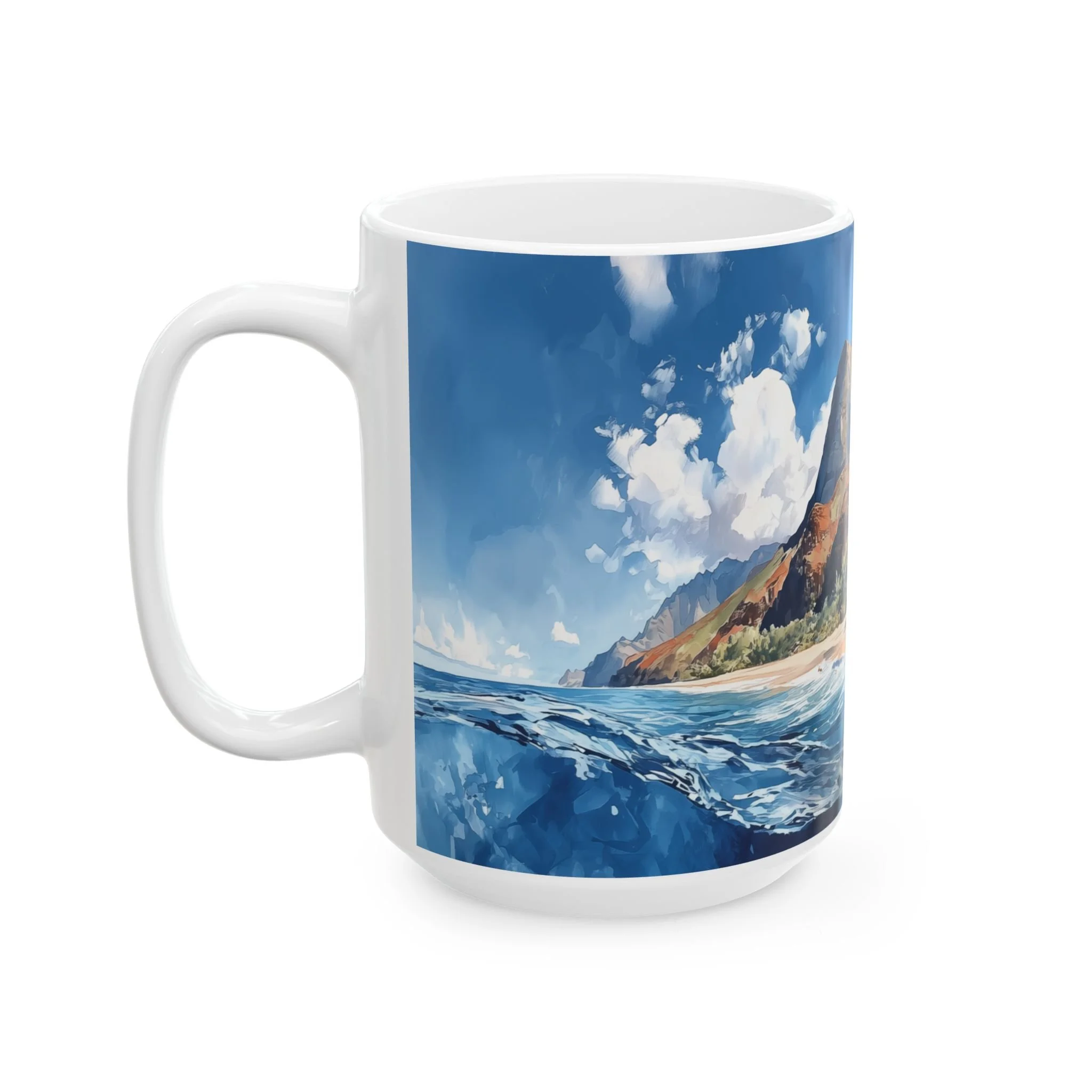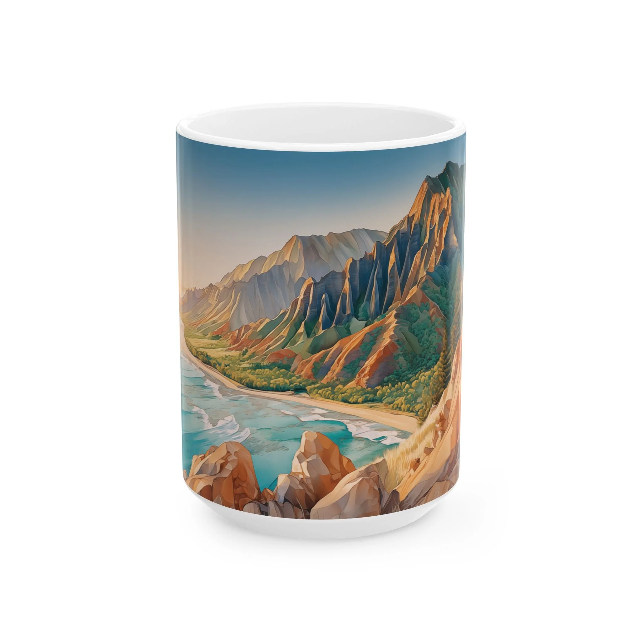 11oz or 15oz sizes, it’s both dishwasher and microwave safe—making it as practical as it is inspiring. Product features - Glossy ceramic finish for an elegant look. - Microwave-safe for convenient heating. - Dishwasher-safe for easy cleaning. - Available in two sizes: 11oz and 15oz. Care instructions - Clean in dishwasher or wash by hand with warm water and dish soap Let every sip transport you back to Kauai.